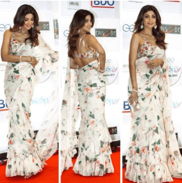 Oraganza saree with handwork and floral prints
