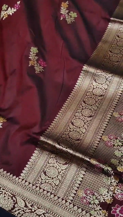 Fashion Vibes Presents Handloom Banarasi Pure Katan Silk Saree with Kadhuwa Work