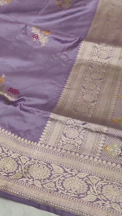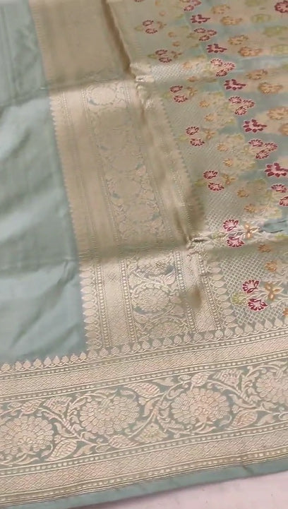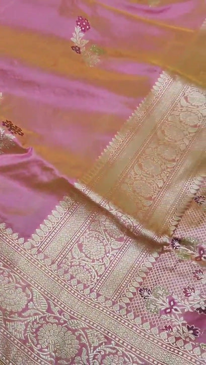 - This saree features exquisite Goldenzari meenakari kadhuwa weaving work