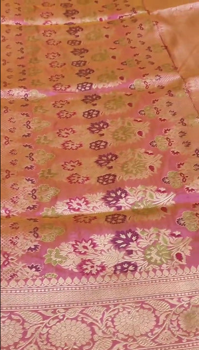 Elevate your wardrobe with our exquisite Handloom Banarasi Pure Katan Silk Saree, featuring intricate golden zari meenakari kadhuwa weaving. This luxurious silkmark certified saree showcases the timeless elegance and rich tradition of Banarasi craftsmanship. This saree combines traditional artistry with modern sophistication, ensuring you stand out with grace and style.
