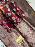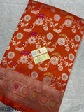 Fashion Vibes presents A Beautifully Banarasi Saree contains fine finishing of gold zari work Konia narrow border in all over saree.