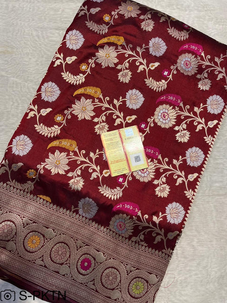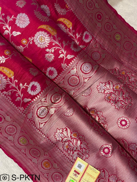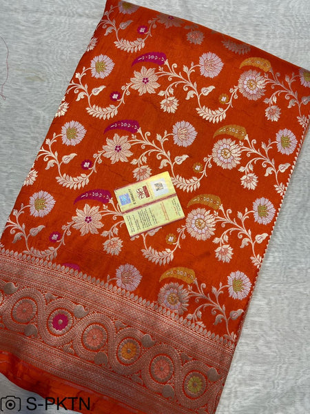 Pure Handloom Banarasi Khaddi Katan By Katan Silk Border Sarees,,