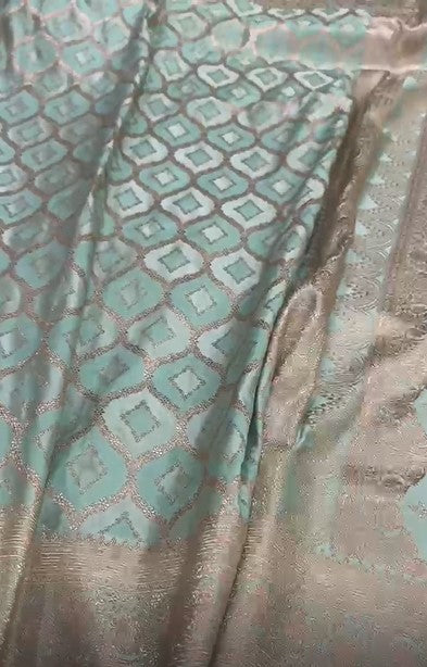 Latest Pure Mashru Silver Zari Satin Silk Turquoise Saree