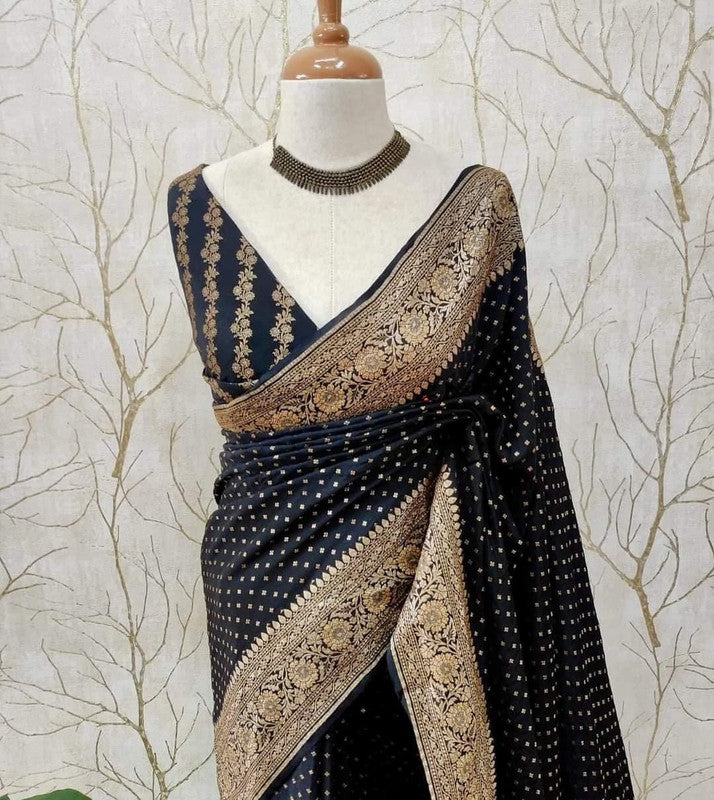 Pure Banarasi Handloom Khaddi Georgette Crepe Silk Border Saree