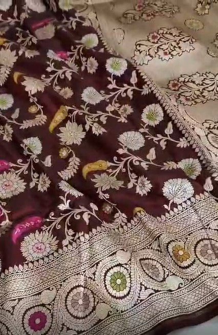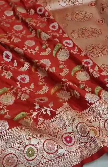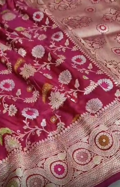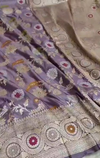Pure Banarasi Khaddi Katan Silk Kadiyal Allover Designer Work Handloom Saree