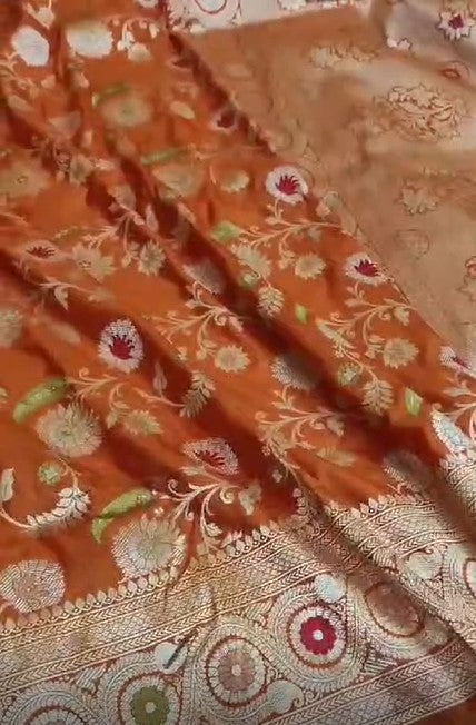 Elevate your style with Pure Banarasi Khaddi Katan Silk Kadiyal Allover Designer Handloom Saree. Handcrafted with intricate details, this saree exudes elegance and luxury. Drape yourself in pure silk and embrace the traditional yet timeless beauty. A must-have for any fashion enthusiast!