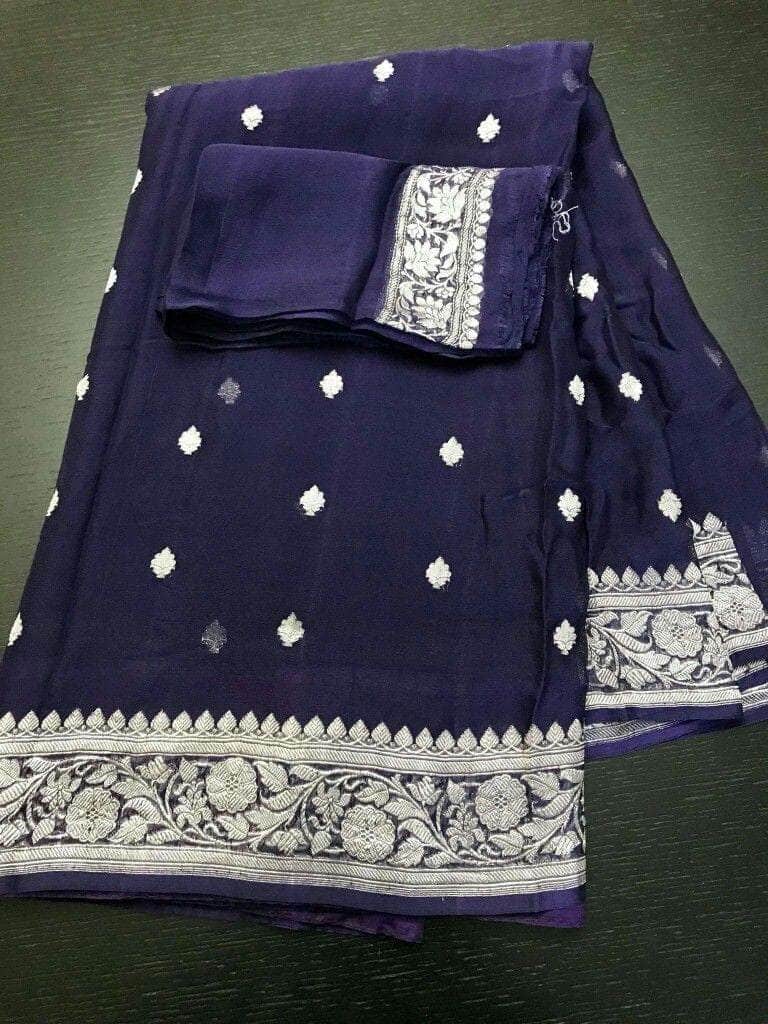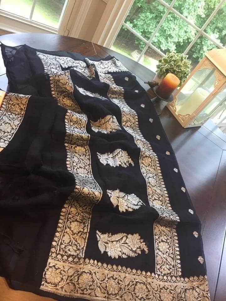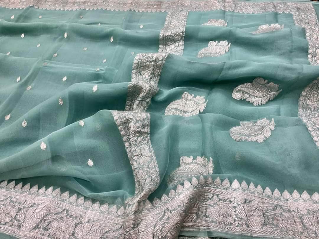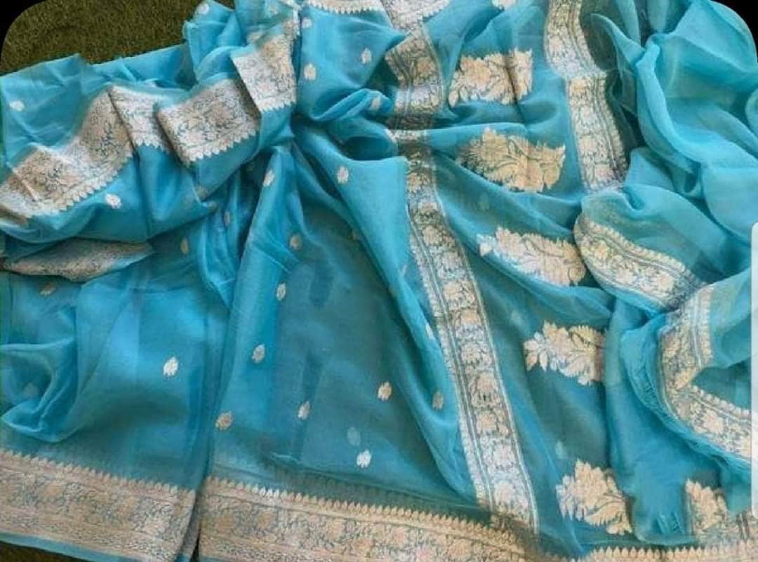 Pure chiffon Handloom Banarasi Chiffon Khaddi Kariyal Saree