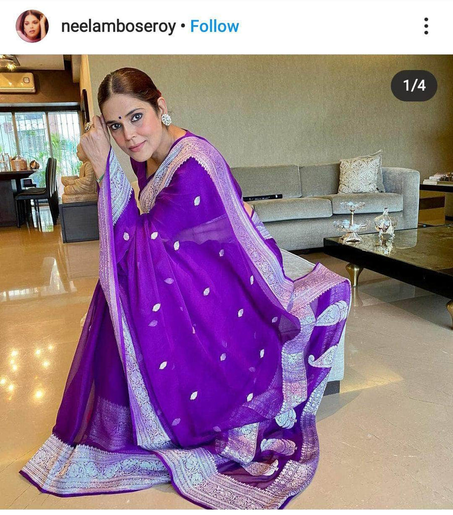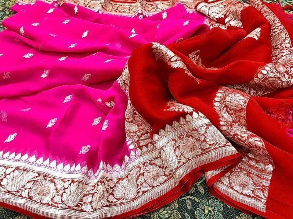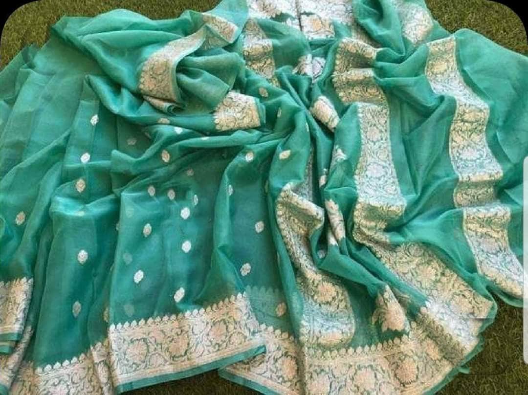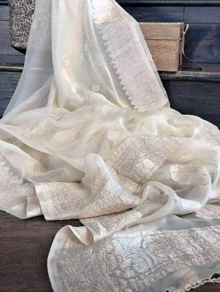 Pure chiffon Handloom Banarasi Chiffon Khaddi Kariyal Saree