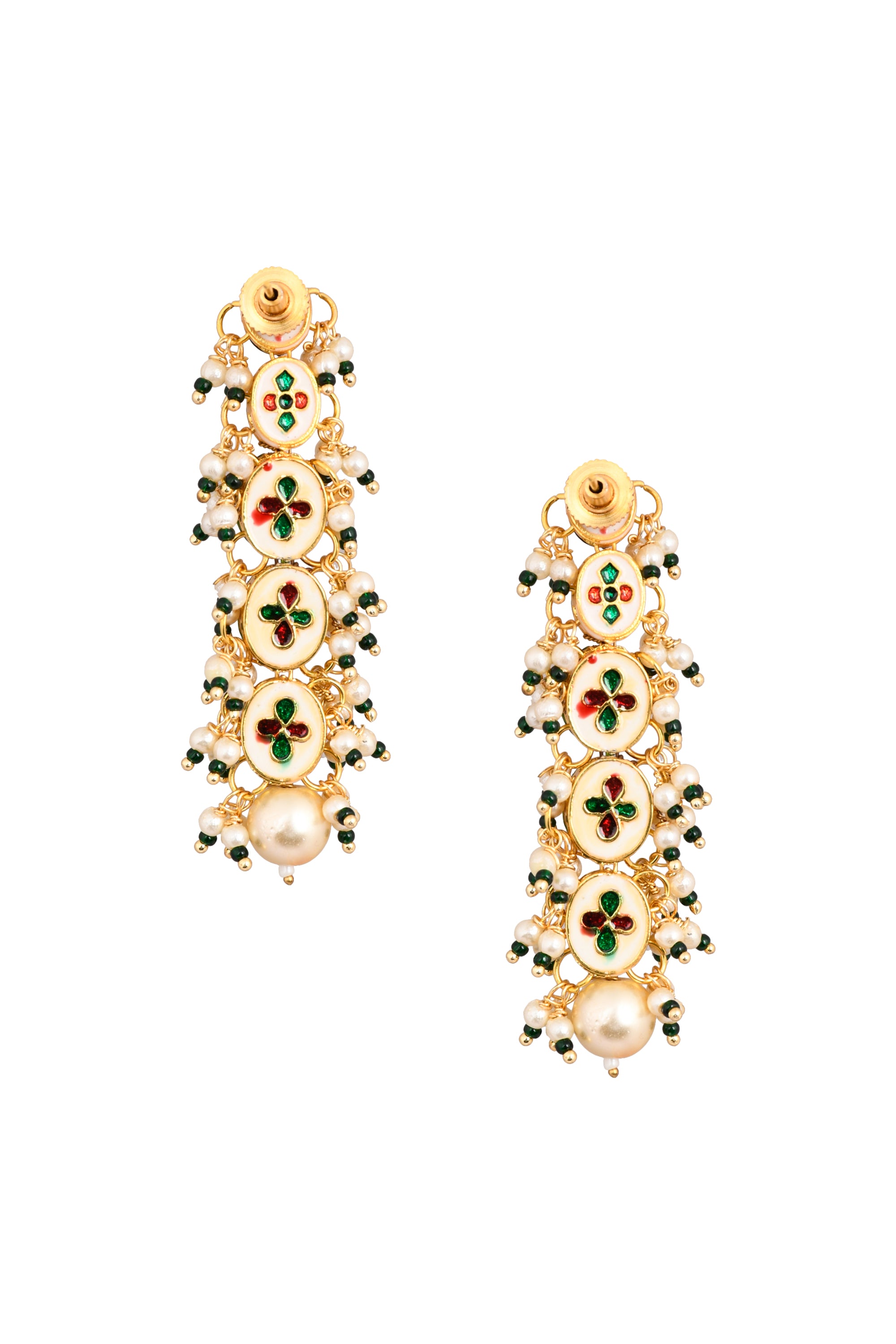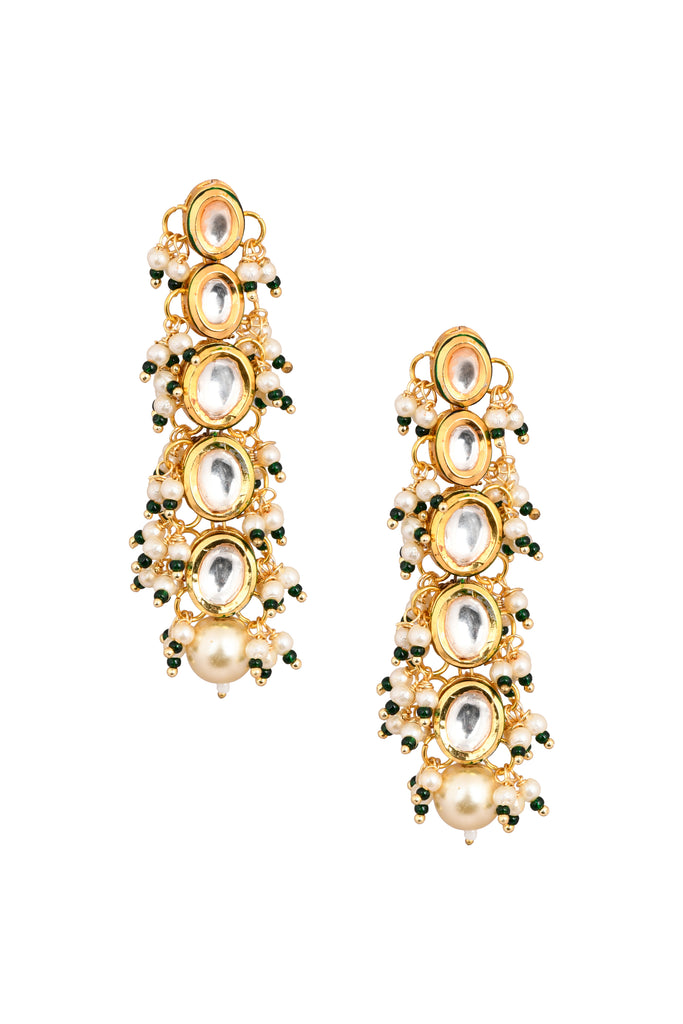 Elevate your style with these stunning Pearl Beaded Kundan Gold Tone Earrings! The perfect combination of elegance and sophistication, these earrings will add a touch of luxury to any outfit. The intricately designed Kundan gold tone setting showcases the lustrous pearls, making these earrings a must-have for any fashion-forward individual. Add a touch of glamour to your wardrobe and make a statement with these beautiful earrings.