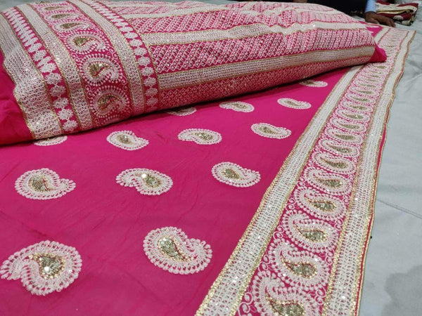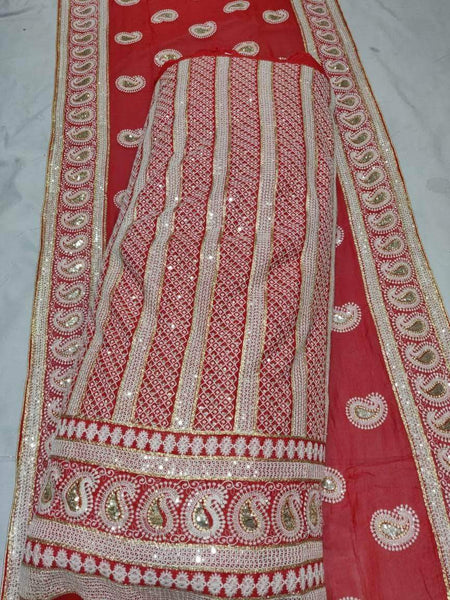 Pure Georgette Lehenga with High-quality Heavy Mukaish work all over the Lehenga and comes with full work on the choli .