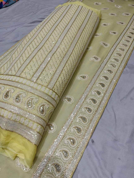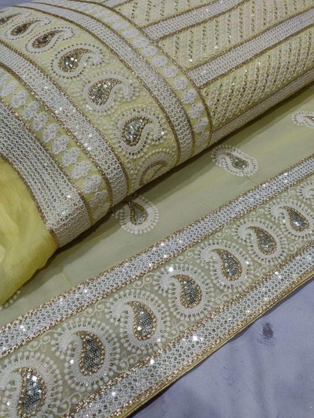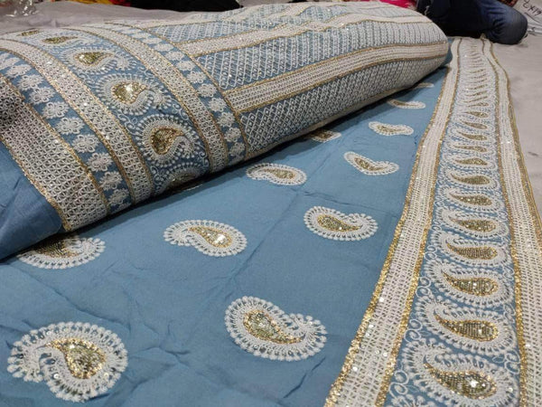 Update your collection with this designer Georgette Lehenga with all over Chikankari Mukaish's work.