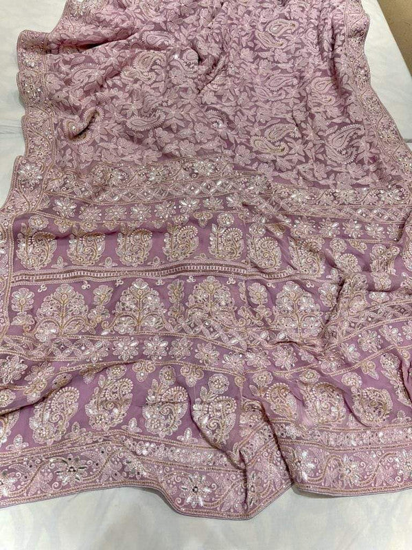 The Fashion Vibes Presented the custom of entirely hand-forming georgette patterns, and its renown is only growing. The amount of physical effort and expert craftsmanship required to create these stunning patterns makes these sarees truly remarkable.