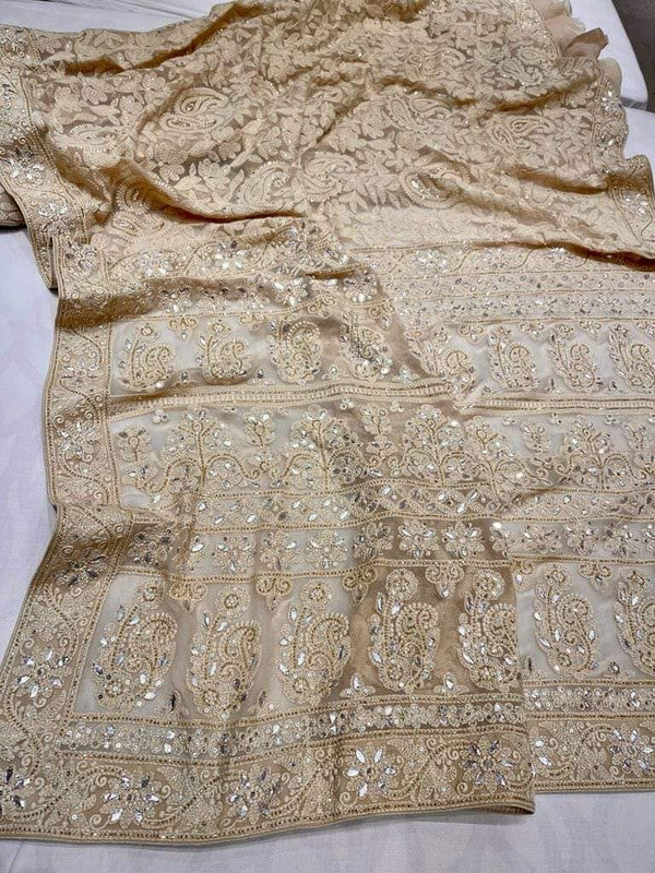 Pure Chikankari and Cutdanna Gottapatti Saree