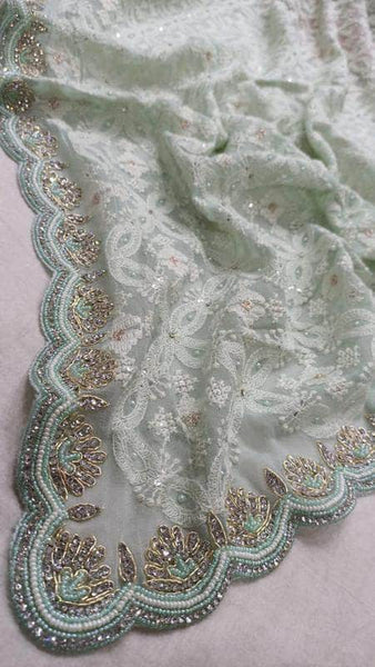 Zardosi Handwork on Pure Georgette Chikankari Saree