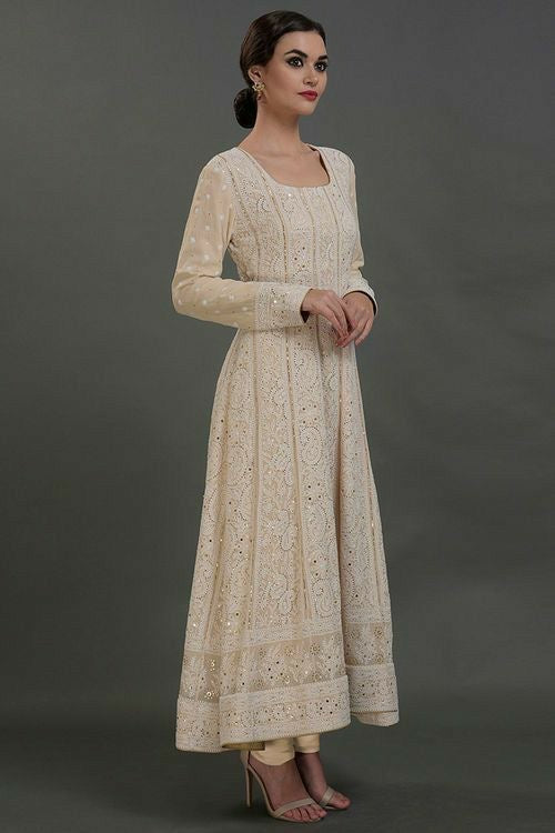 Beautiful Pure Georgette Handwork Chikankari Off-White Anarkali Suit