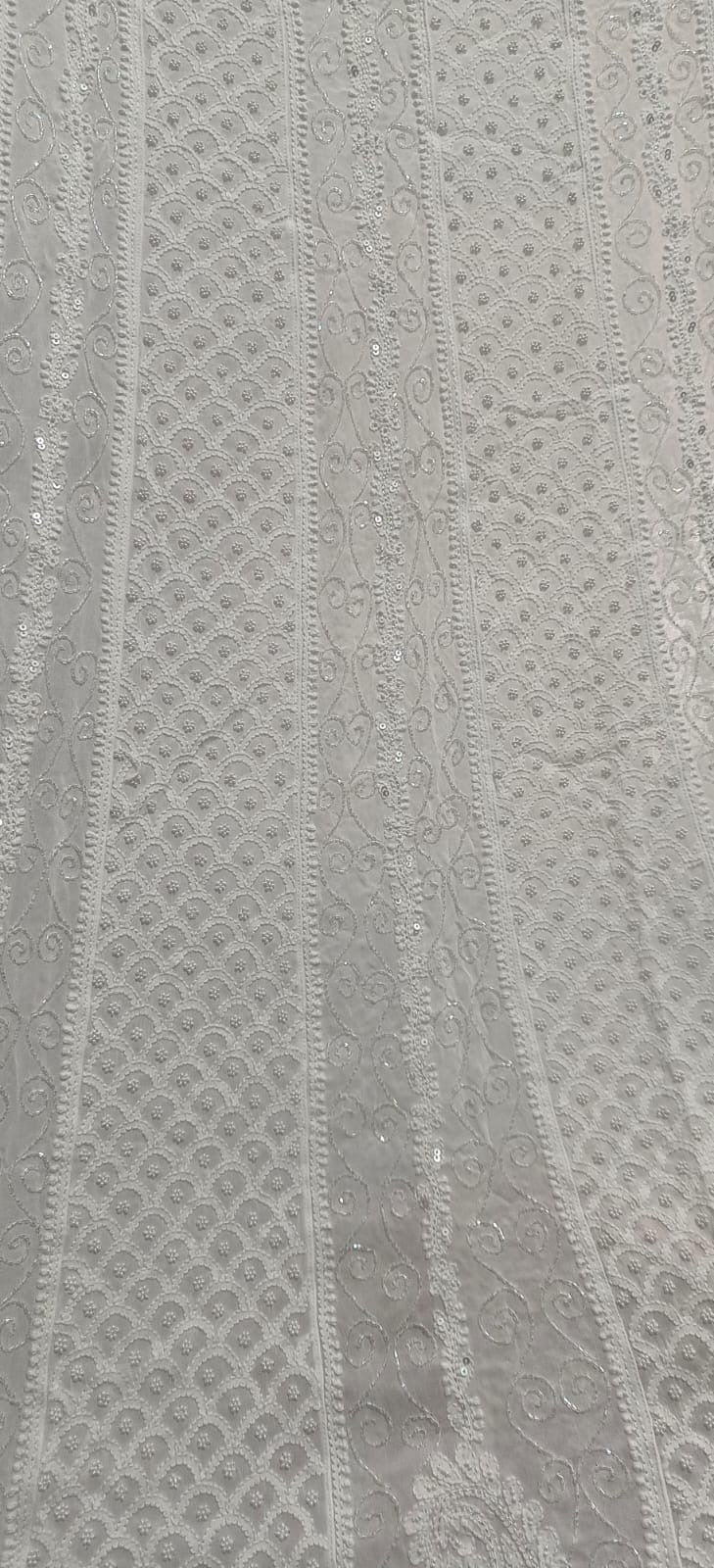Look beautiful with this Chikankari Anarkali Suit. Viscose Georgette fabric is used with designer fitting and details.
