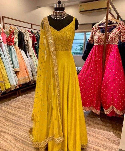 Gorgeous and beautiful Dresses made in heavy Fabric with Anarkali type gown. This designer suit comes with matching embroidered dupatta.