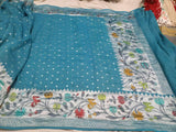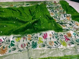 Pure Banarasi Handwoven Khaddi Tusser Katan Silk Border Sari from the looms of Banaras.