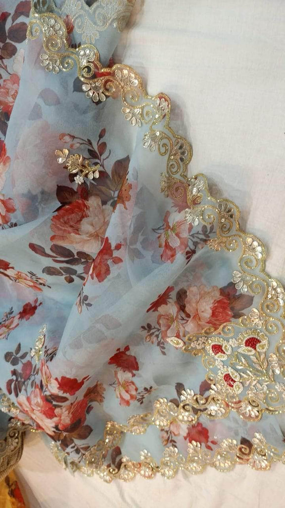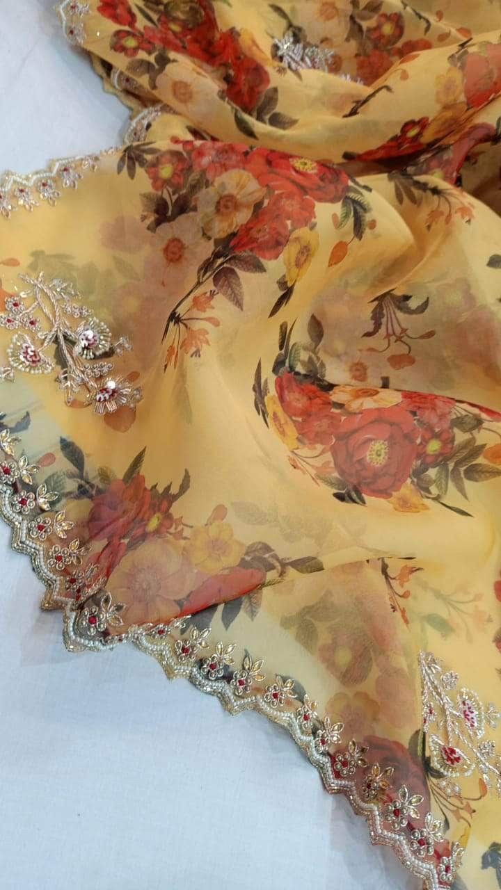 Saree has beautiful zardozi handwork embroidered border in all over the saree which gives this saree an elegant look.