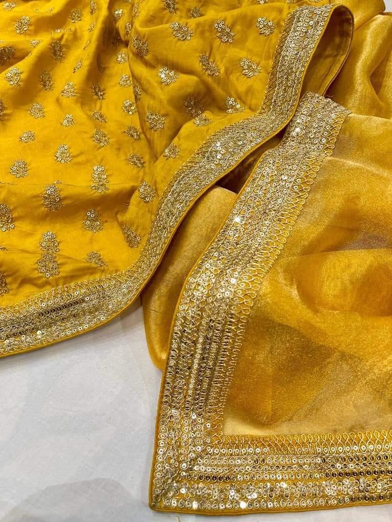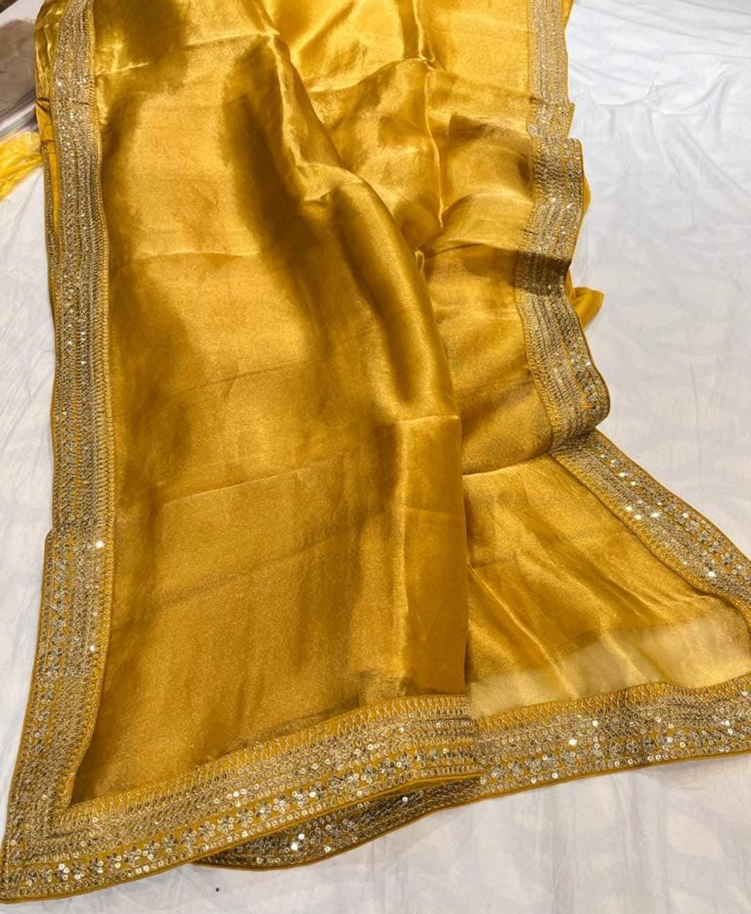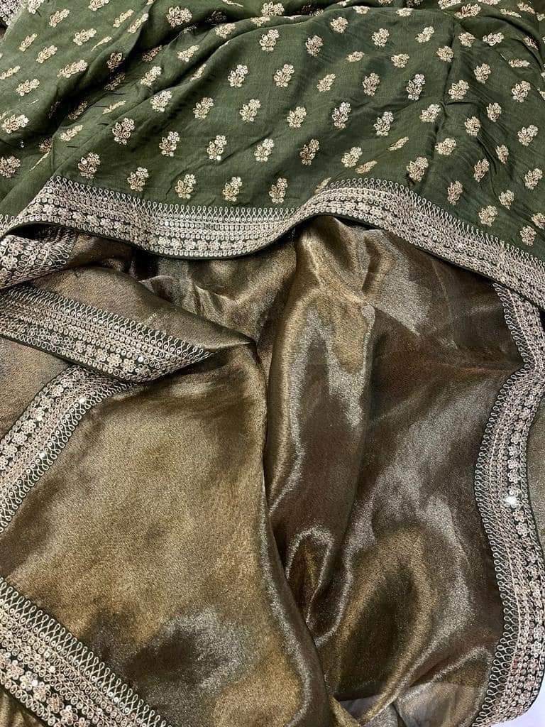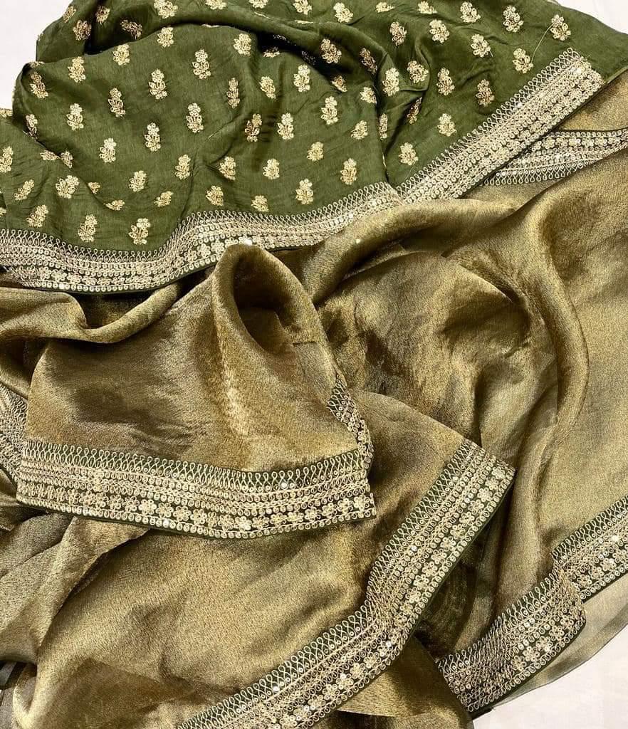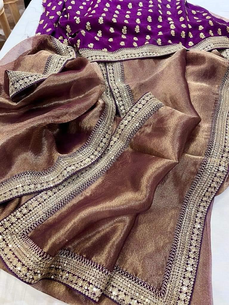 Embrace the beauty by draping this beautiful embroidered tissue Silk Saree with Floral Weaving, elevated with an elegantly woven border.