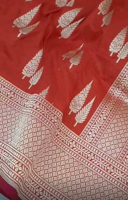 Handwoven Pure Banarasi Katan Silk Orange with Double Zari Weaved work Saree