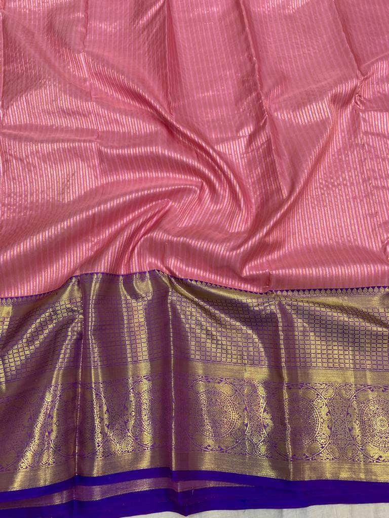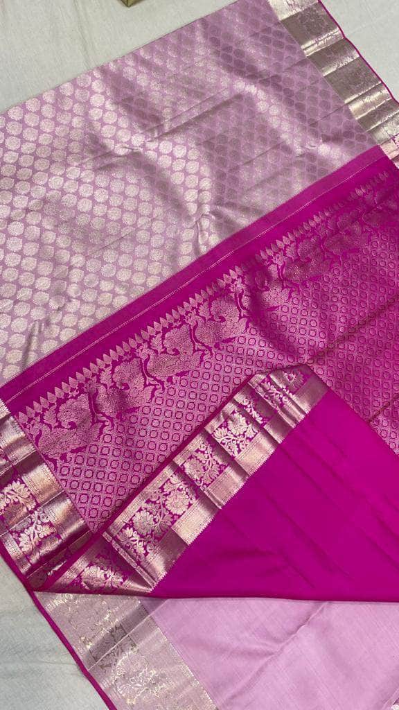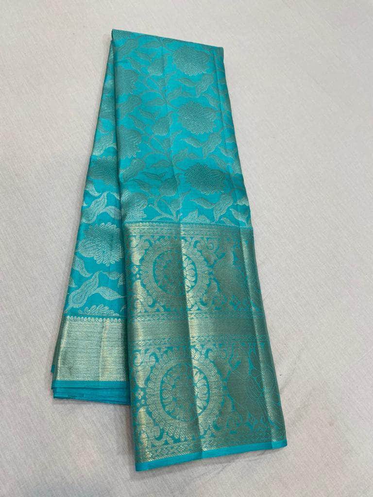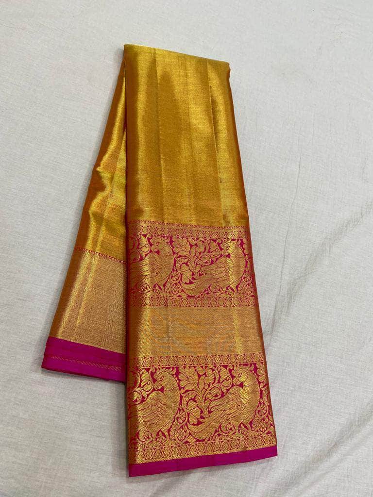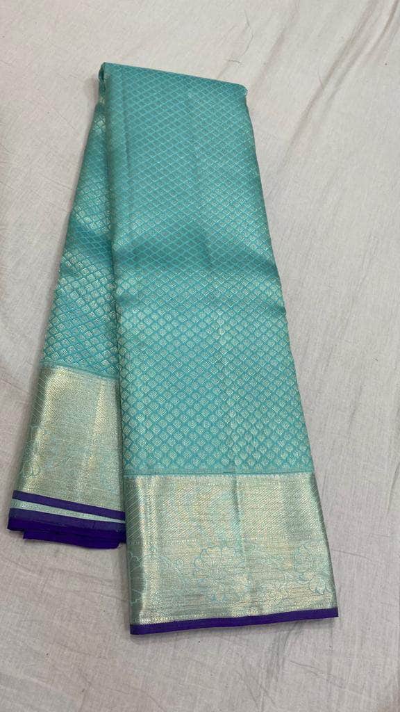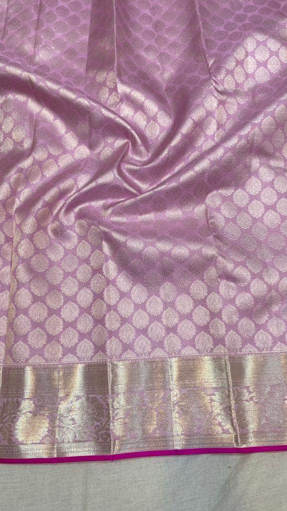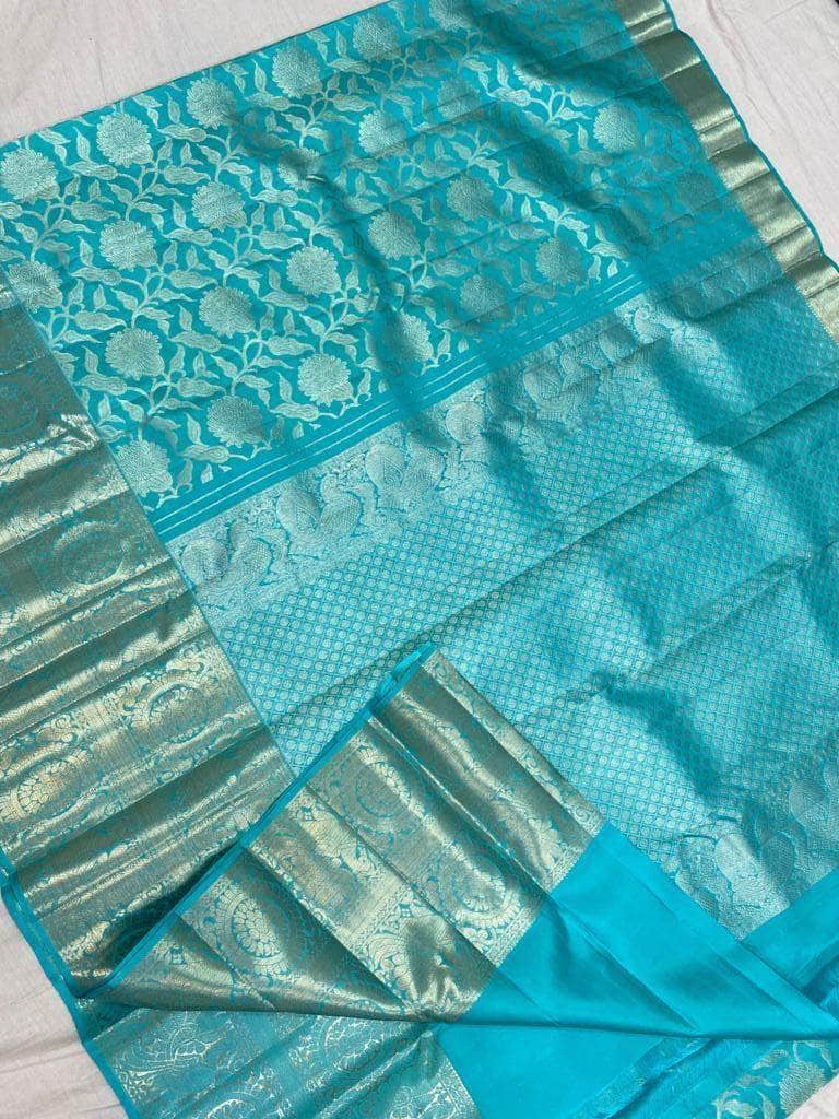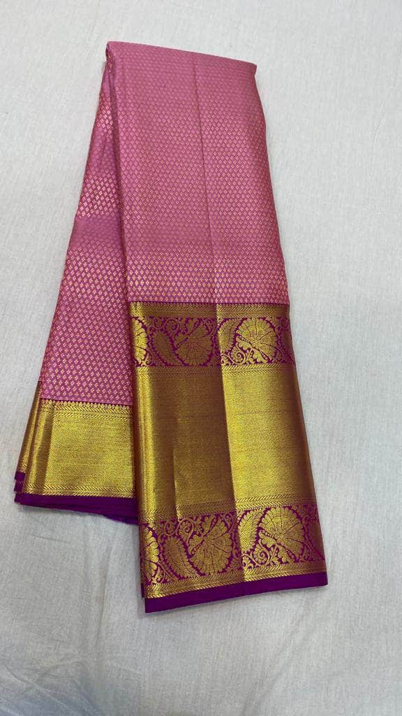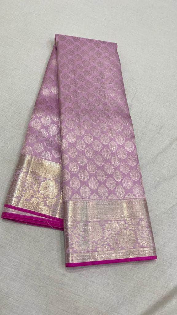 Fashion Vibes presents Kanchipuram Silk Sarees with gold or silver zari work all over. Comes with matching blouse piece.