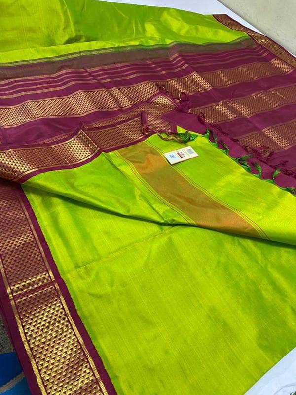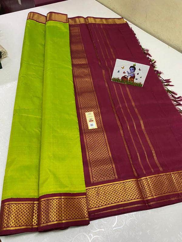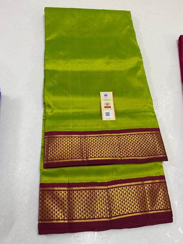 This is an exclusive pure Kanchipuram Silk Saree with beautiful zari pattern weaved trendy border in all over saree.