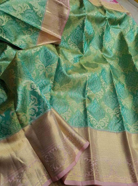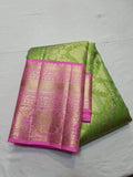 This is an exclusive pure Kanjivaram Silk Saree with beautiful zari pattern weaved traditional broad border in all over saree.