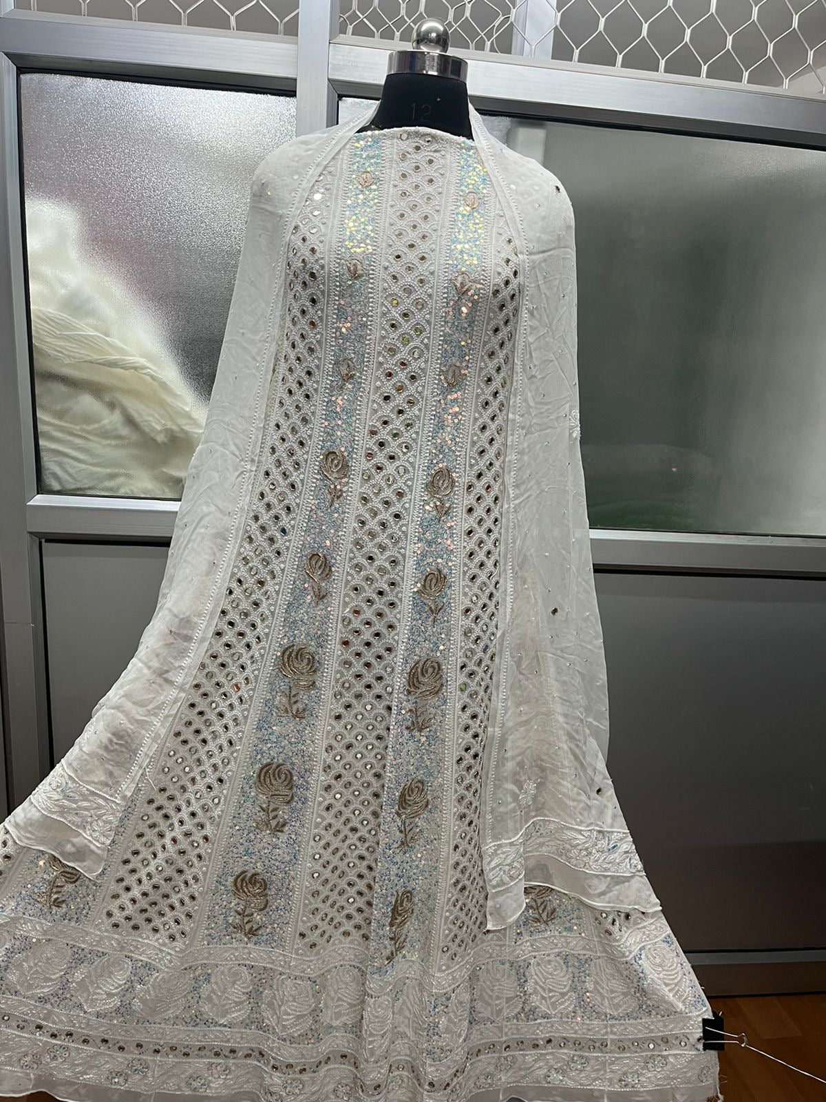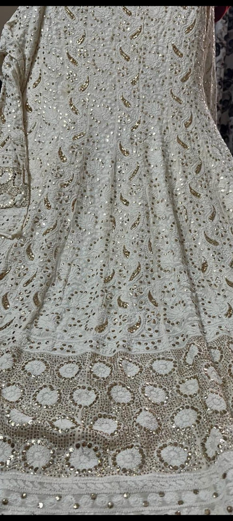 Designer Pure Georgette Handwork Chikankari Off-White Anarkali Suit