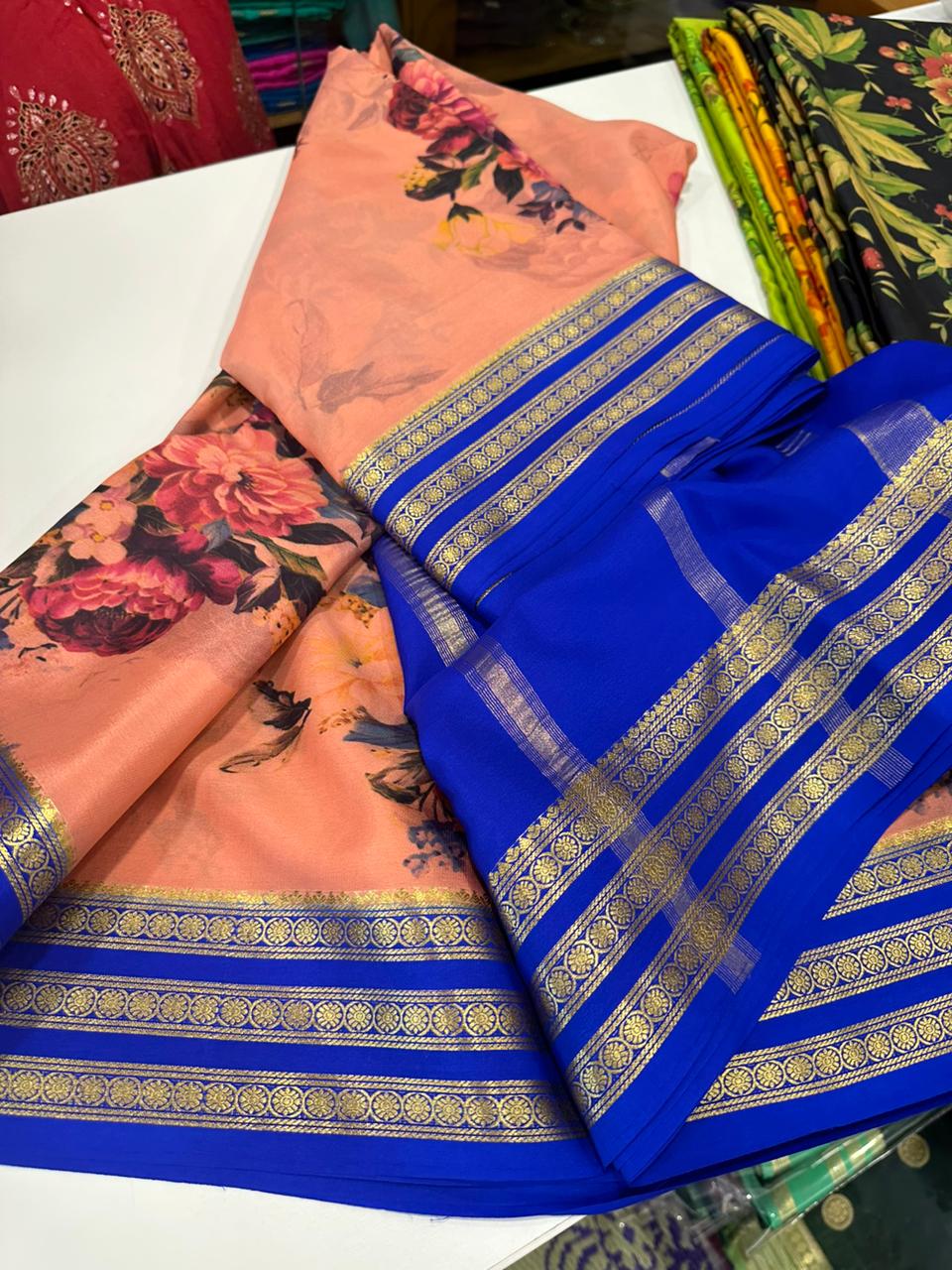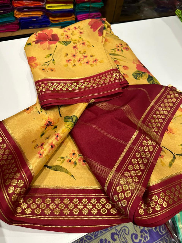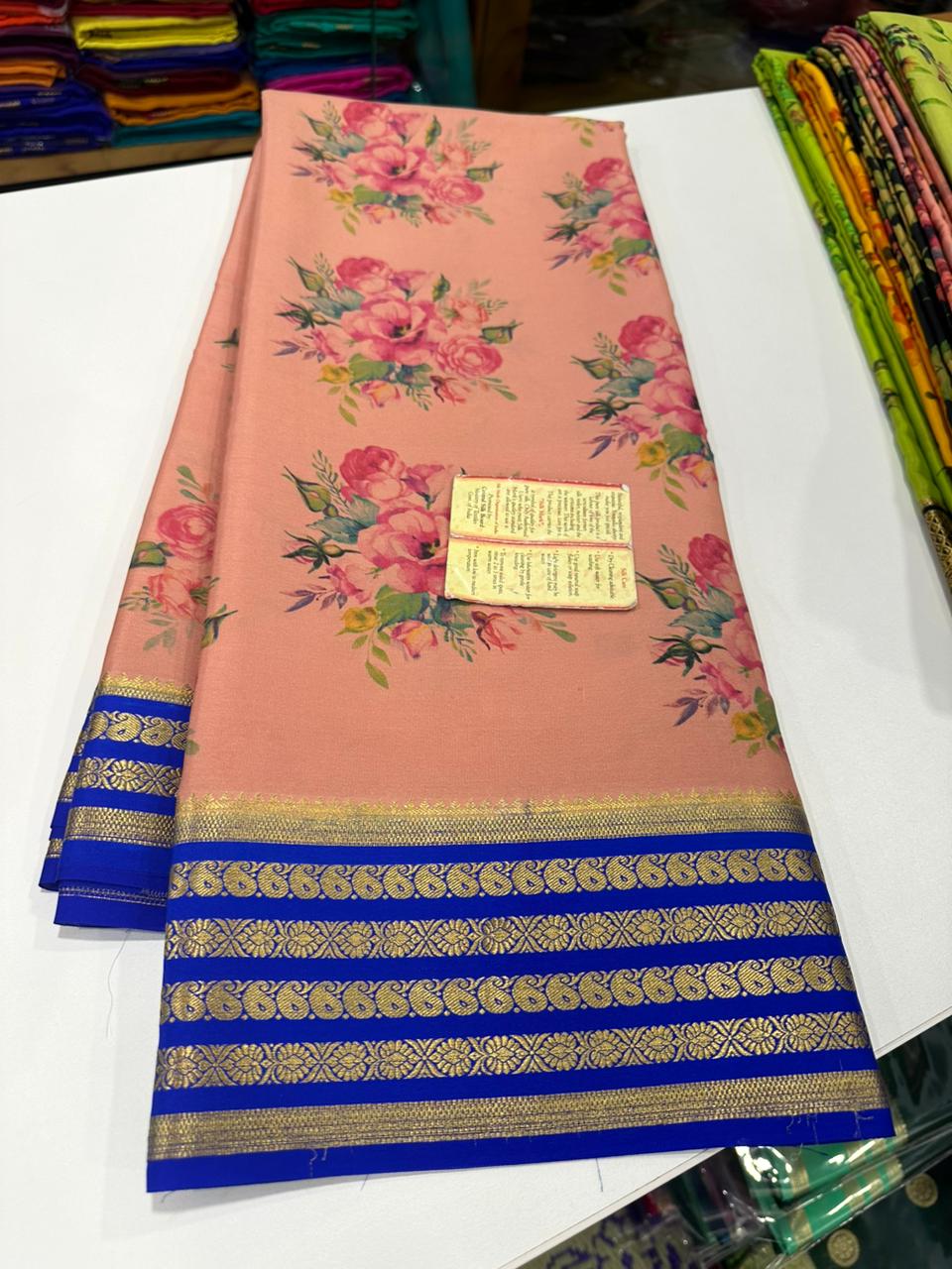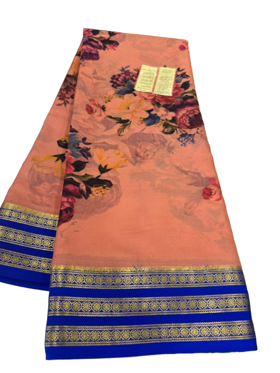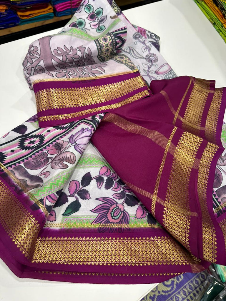 - Kalamkari Floral Printed with heavy quality Mysoore silk saree