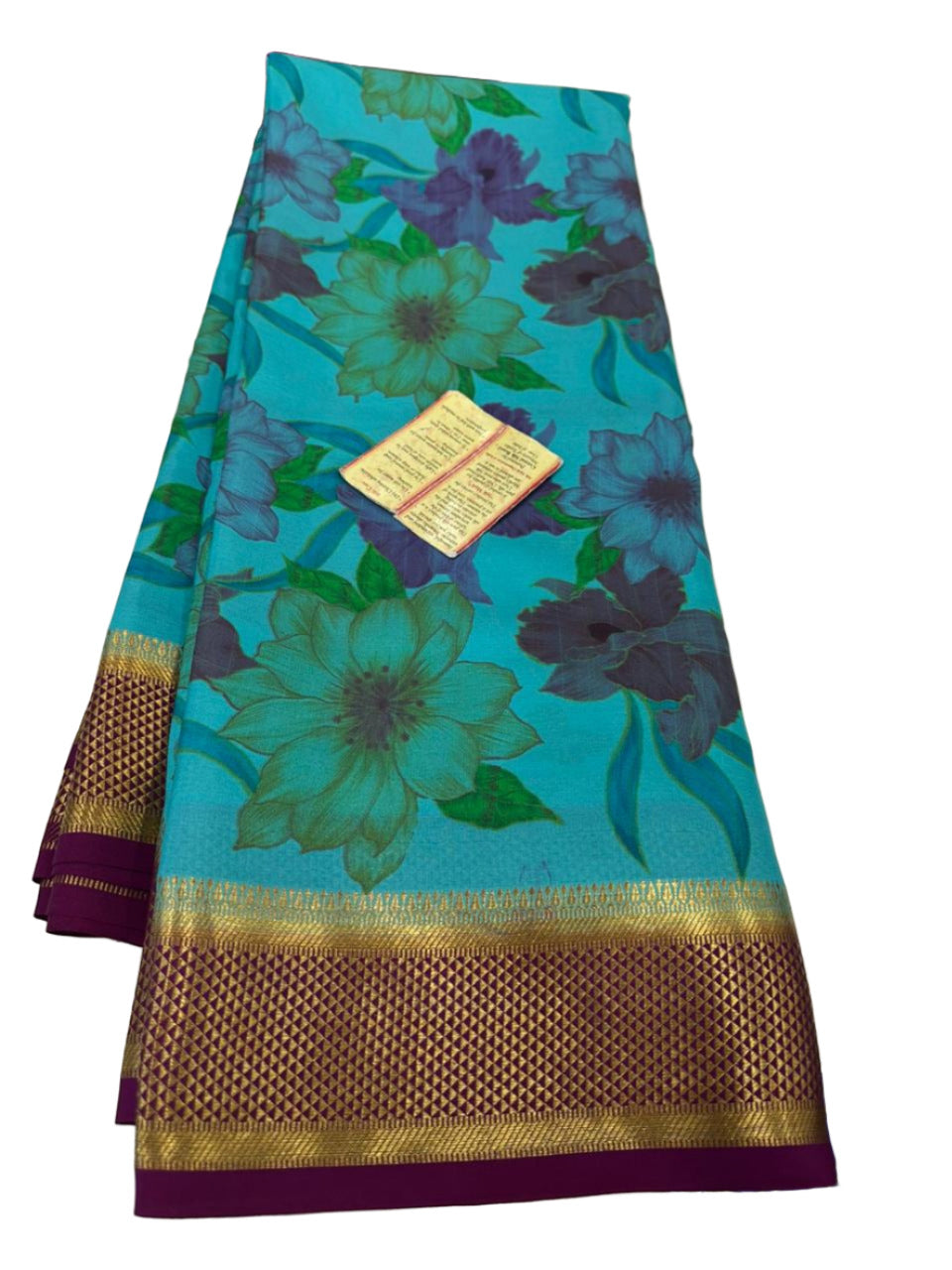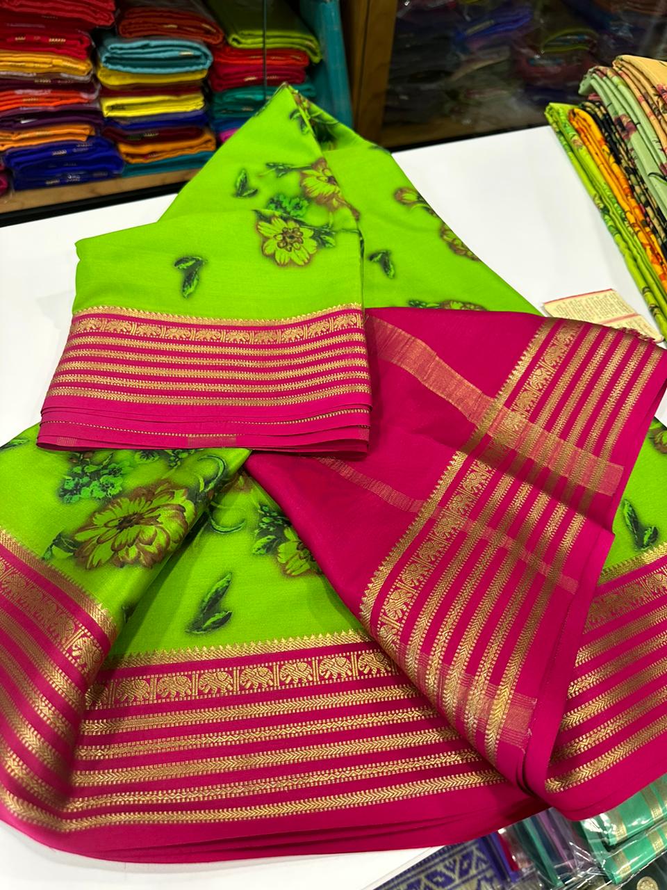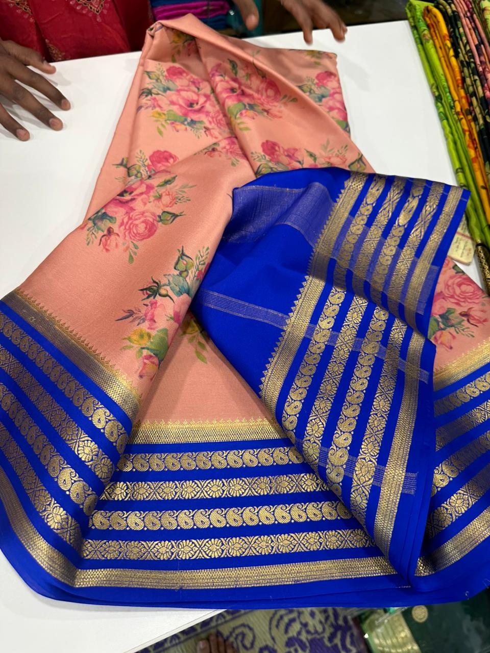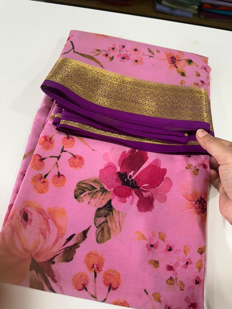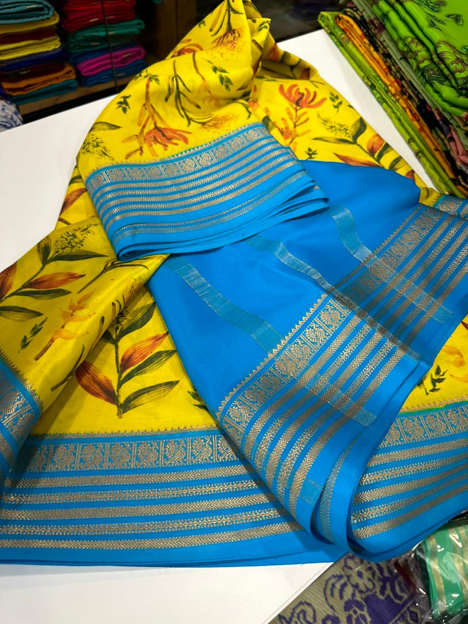 - Kalamkari Floral Printed with heavy quality Mysoore silk saree