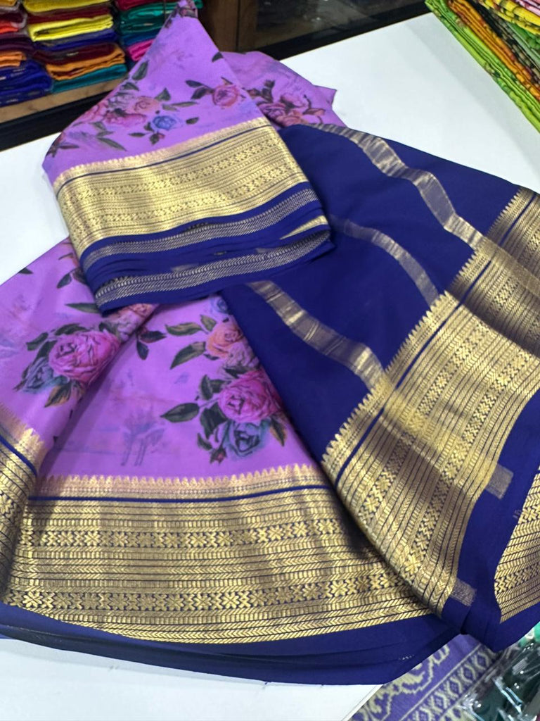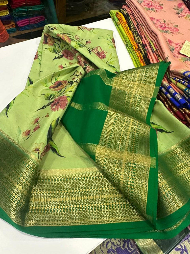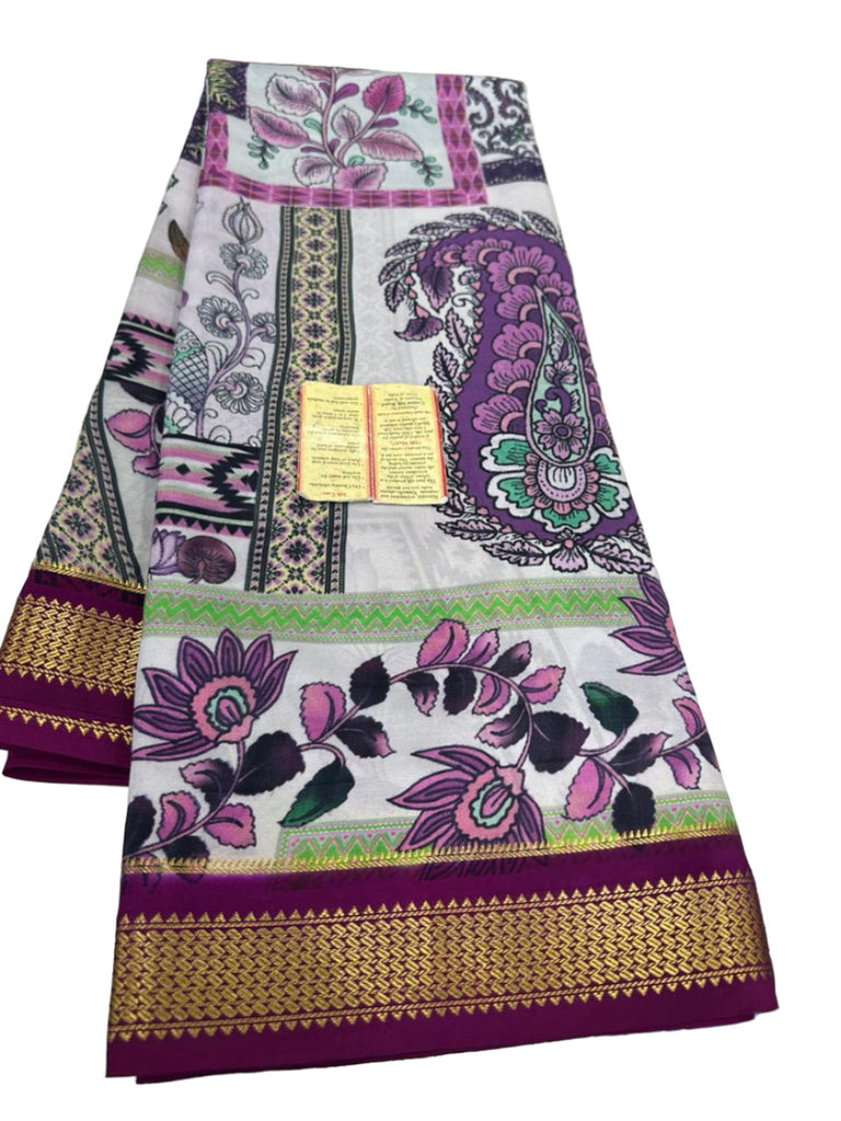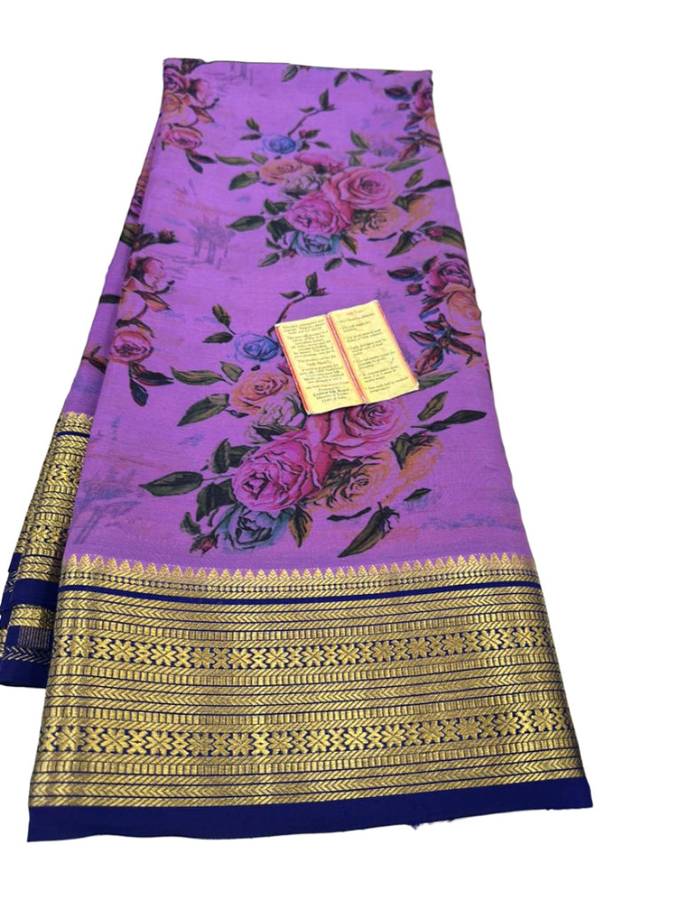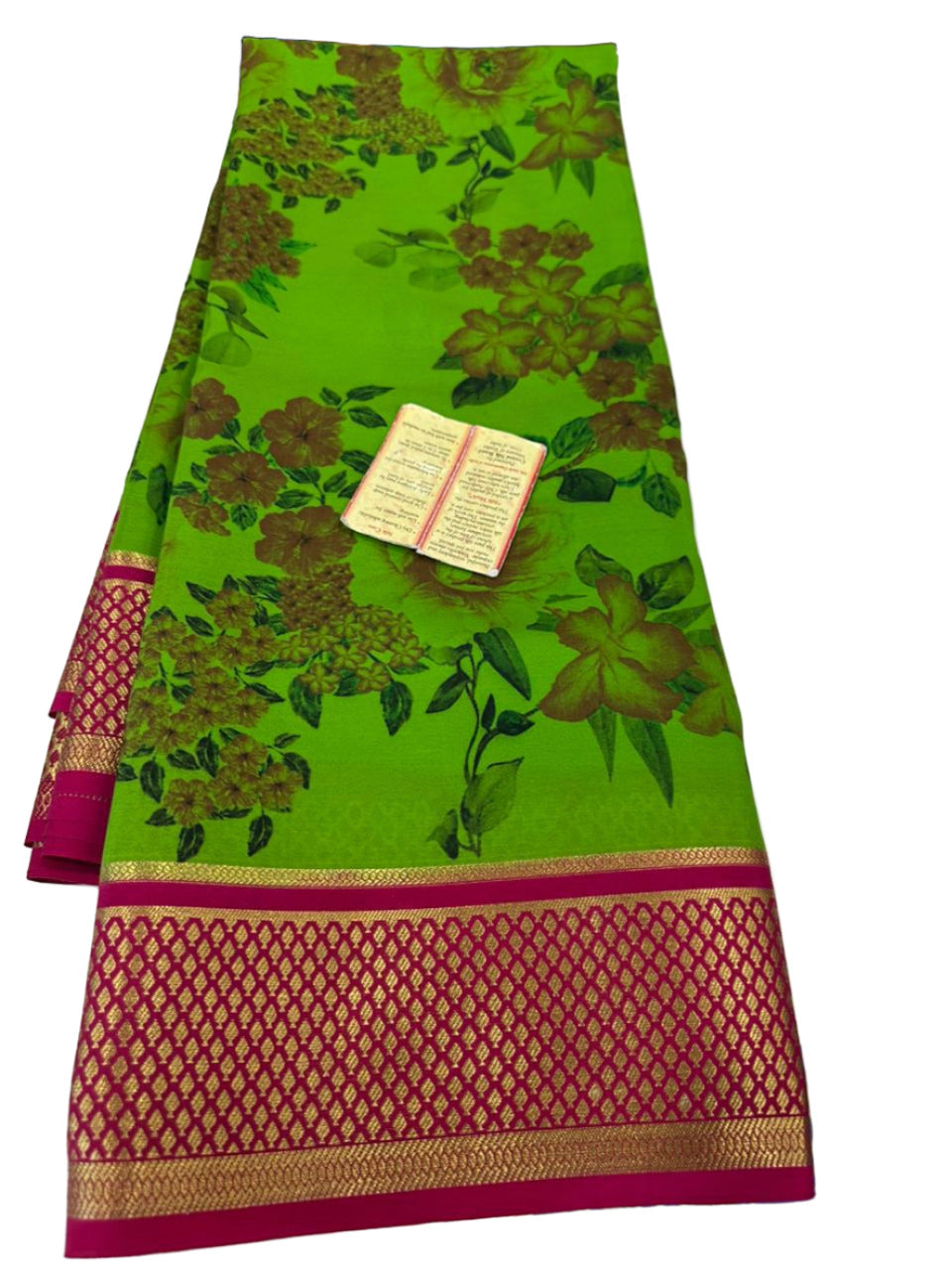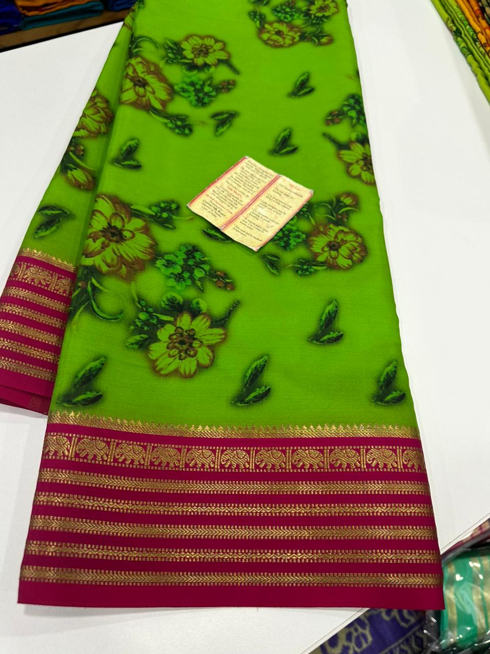- Kalamkari Floral Printed with heavy quality Mysoore silk saree