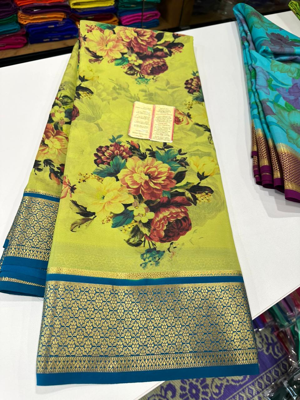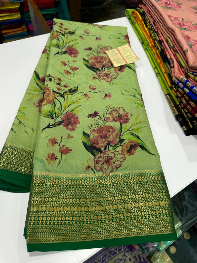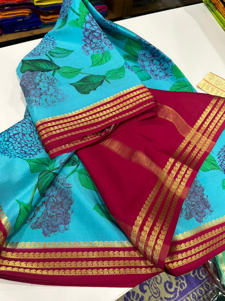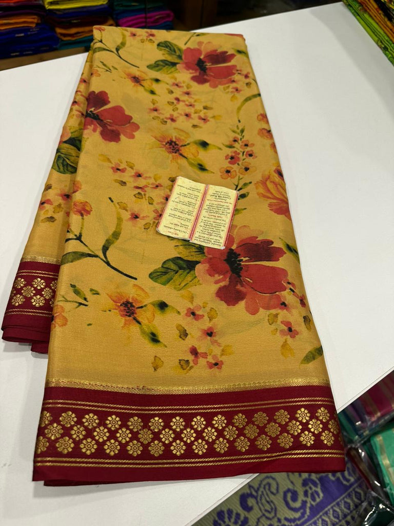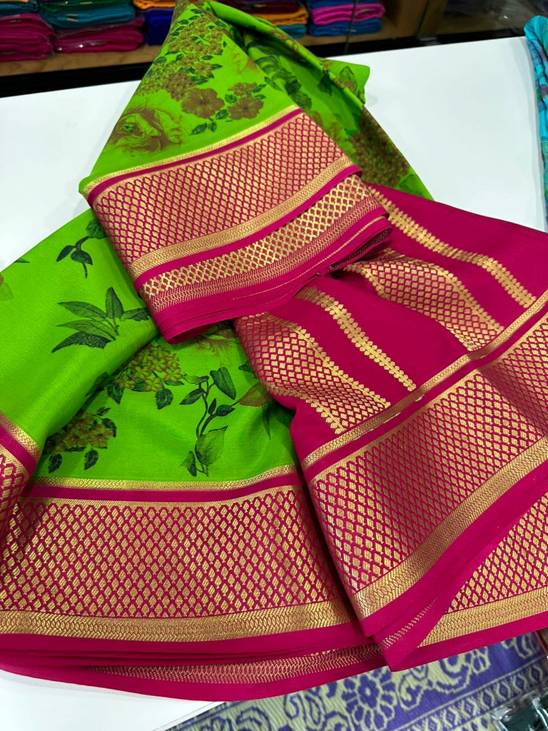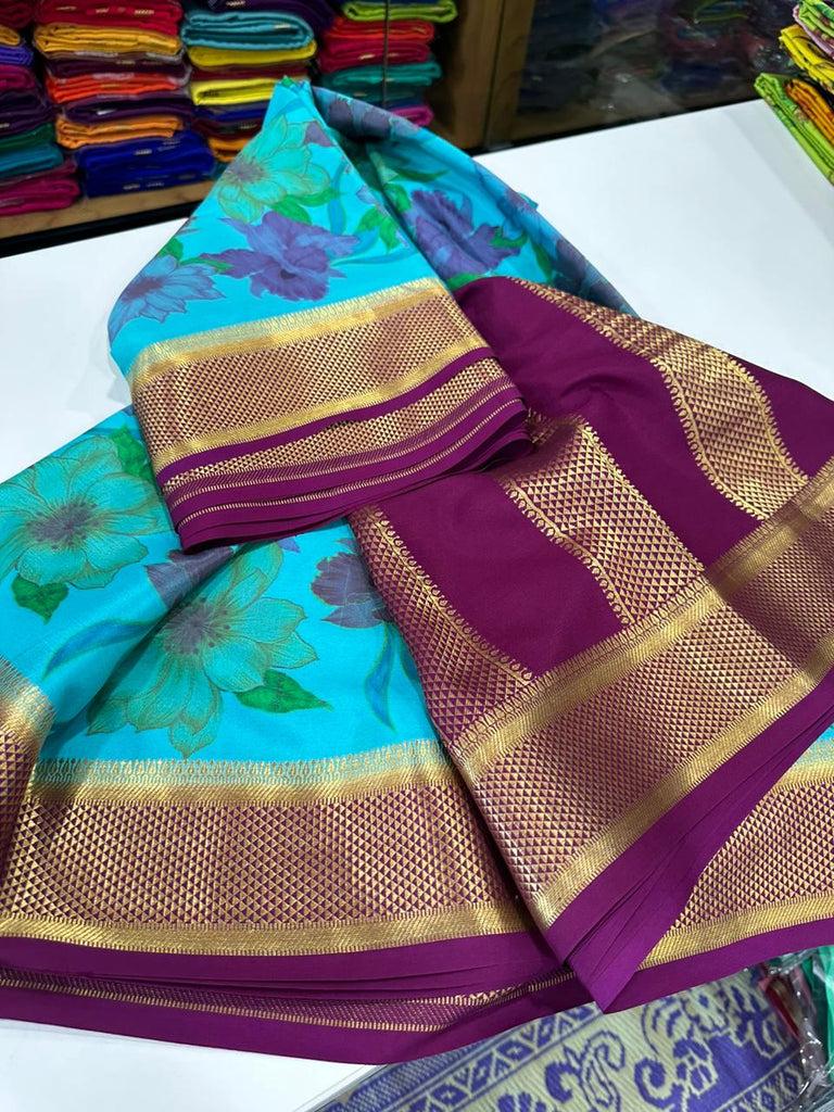 - Kalamkari Floral Printed with heavy quality Mysoore silk saree