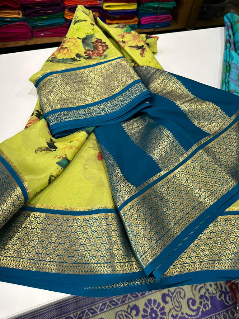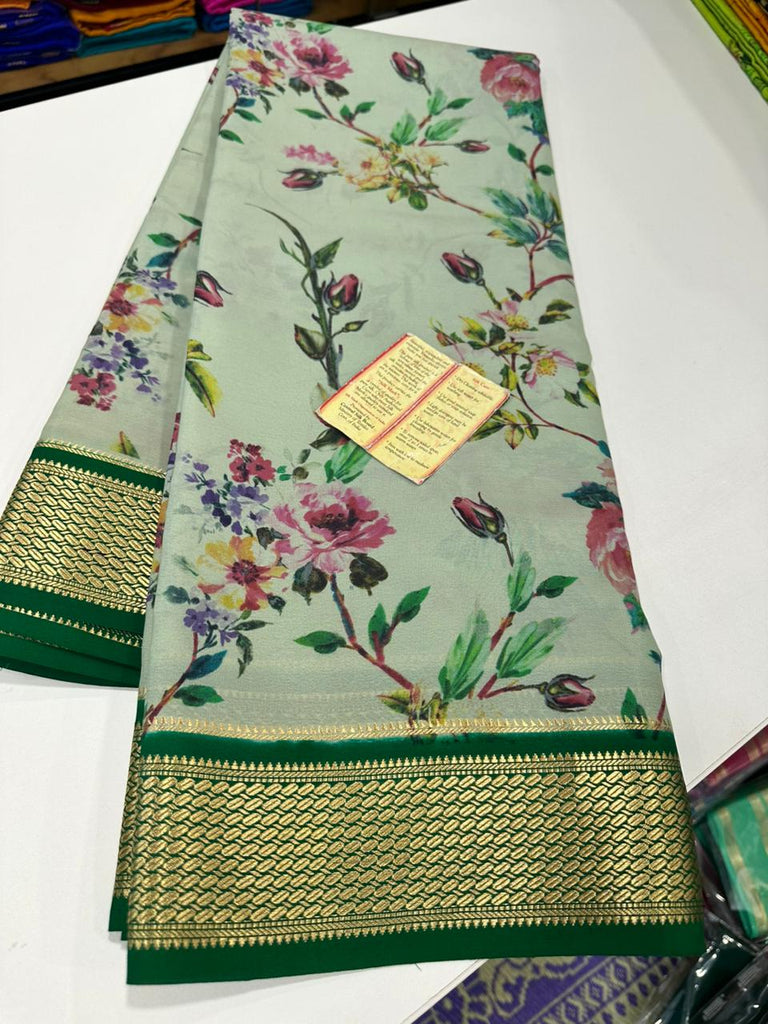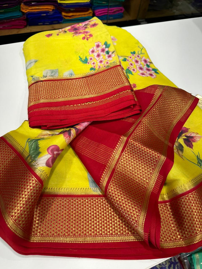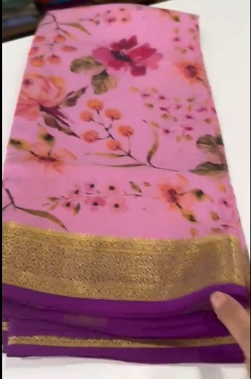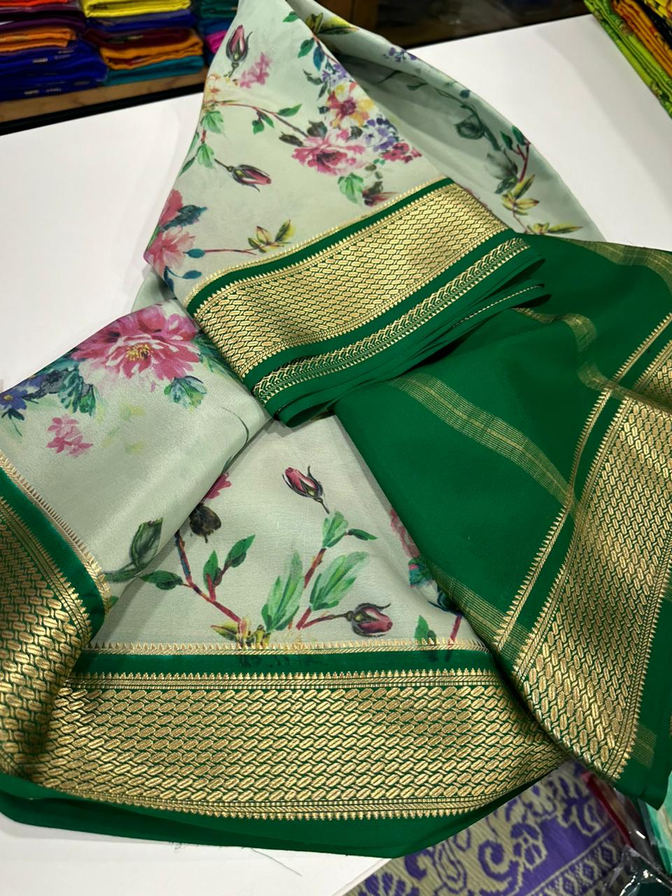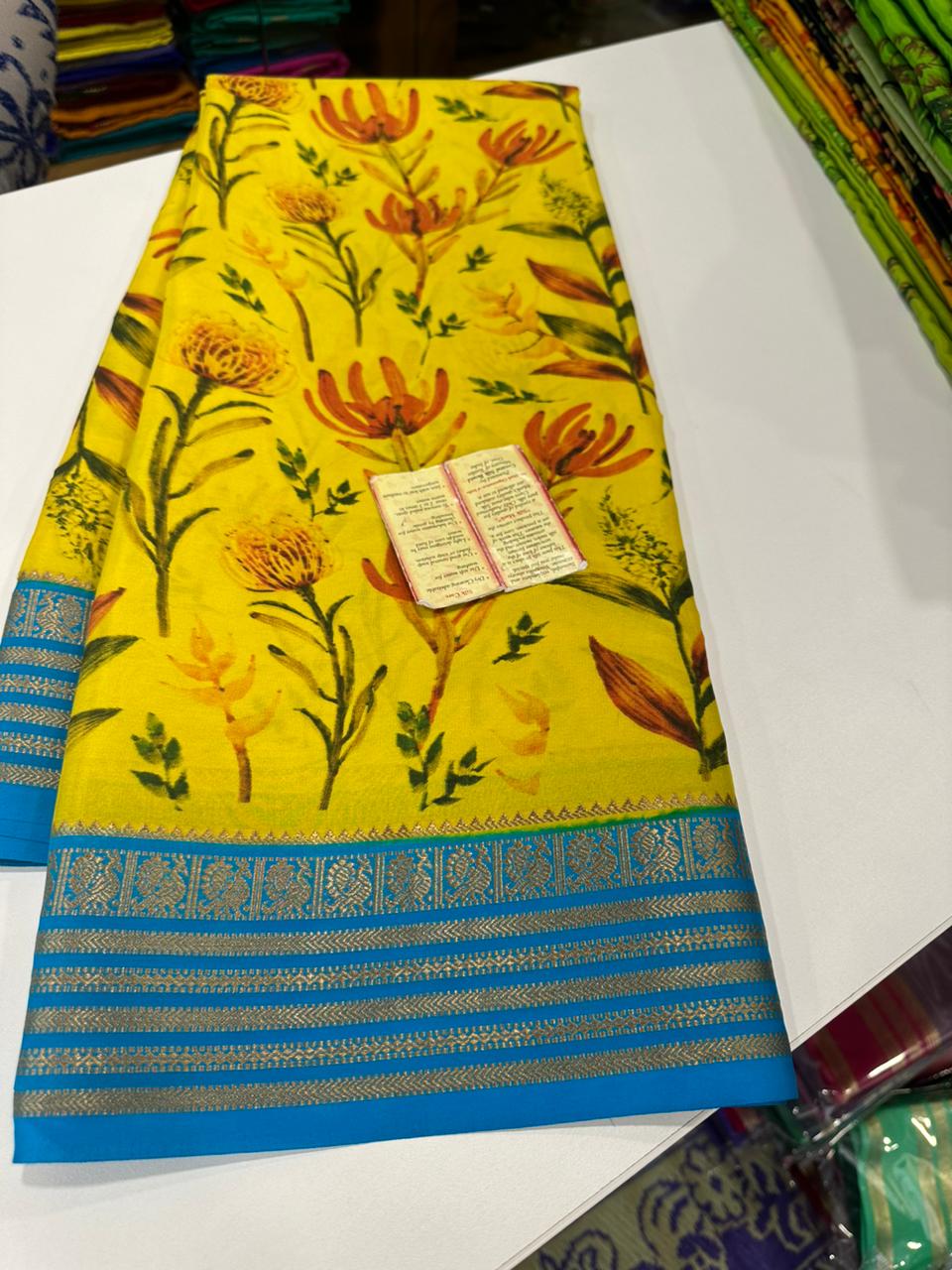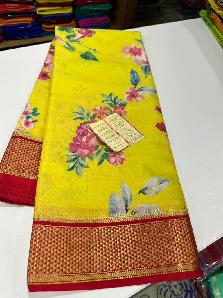 - Kalamkari Floral Printed with heavy quality Mysoore silk saree