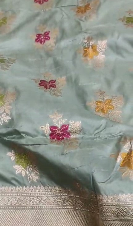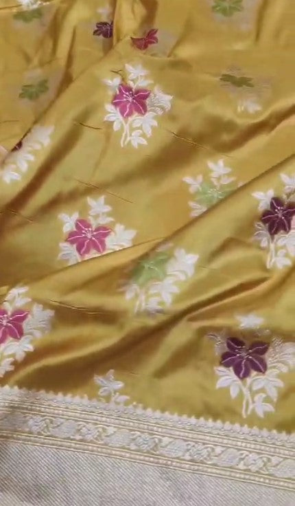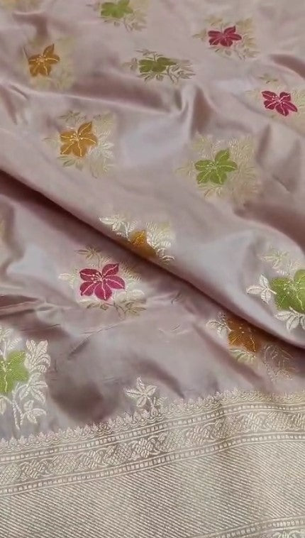 New Exclusive Pure Banarasi Handloom Meenakari Work Katan Silk Saree