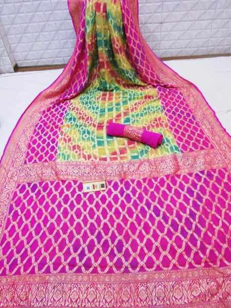Pure Banarasi Khaddi Chiffon Georgette Silk Rainbows Dyed Saree