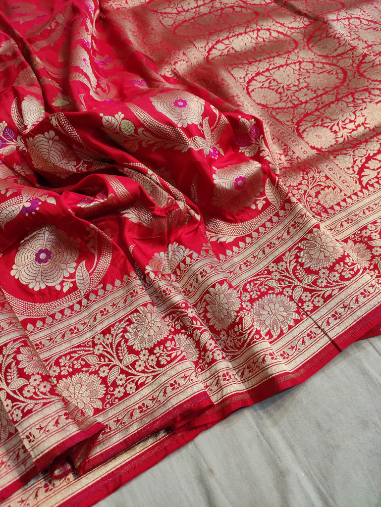 Pure Banarasi Silk Katan Jal Meenakari Saree