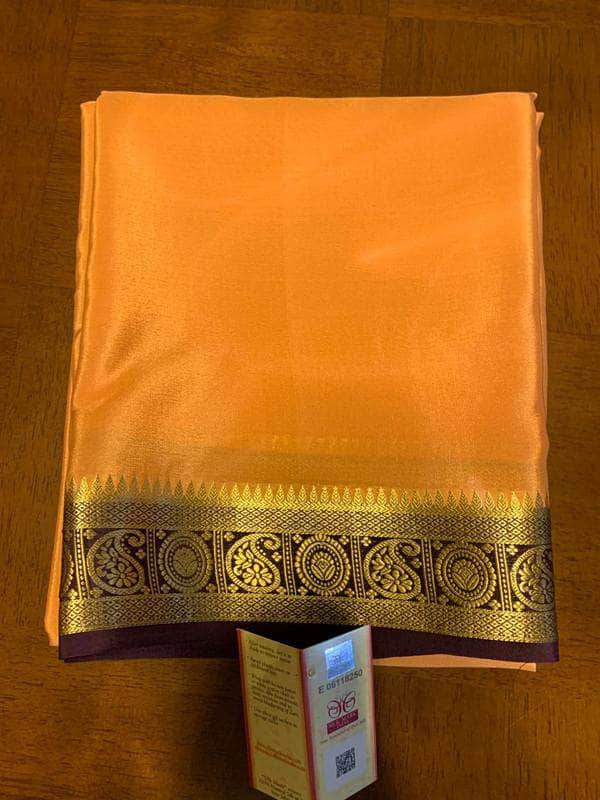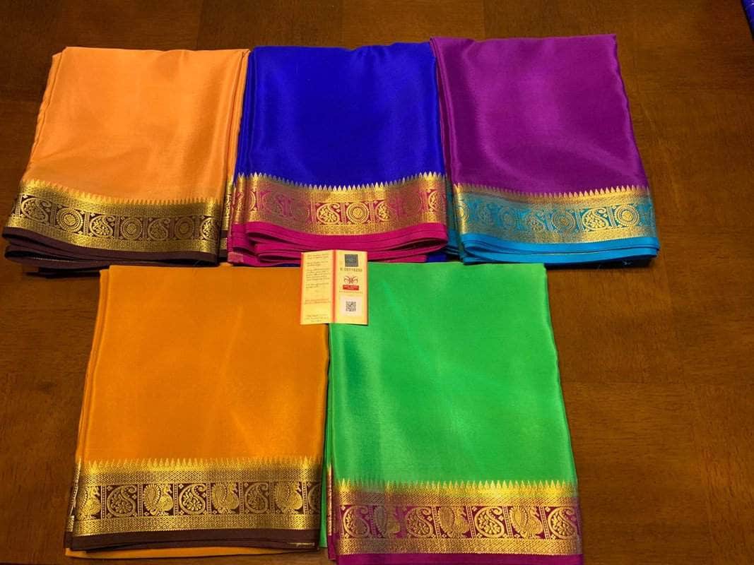 Exclusive range of South silk, which is a traditional Indian wear. The crepe saree comes with a plain body and striped pallú.