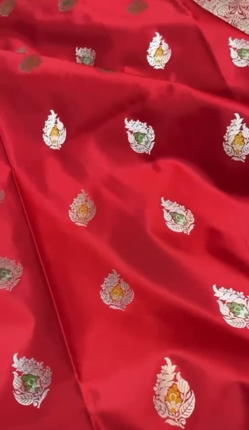 Beautiful Flowy Fabric Zari Weaved Banarasi Mashru Silk Saree