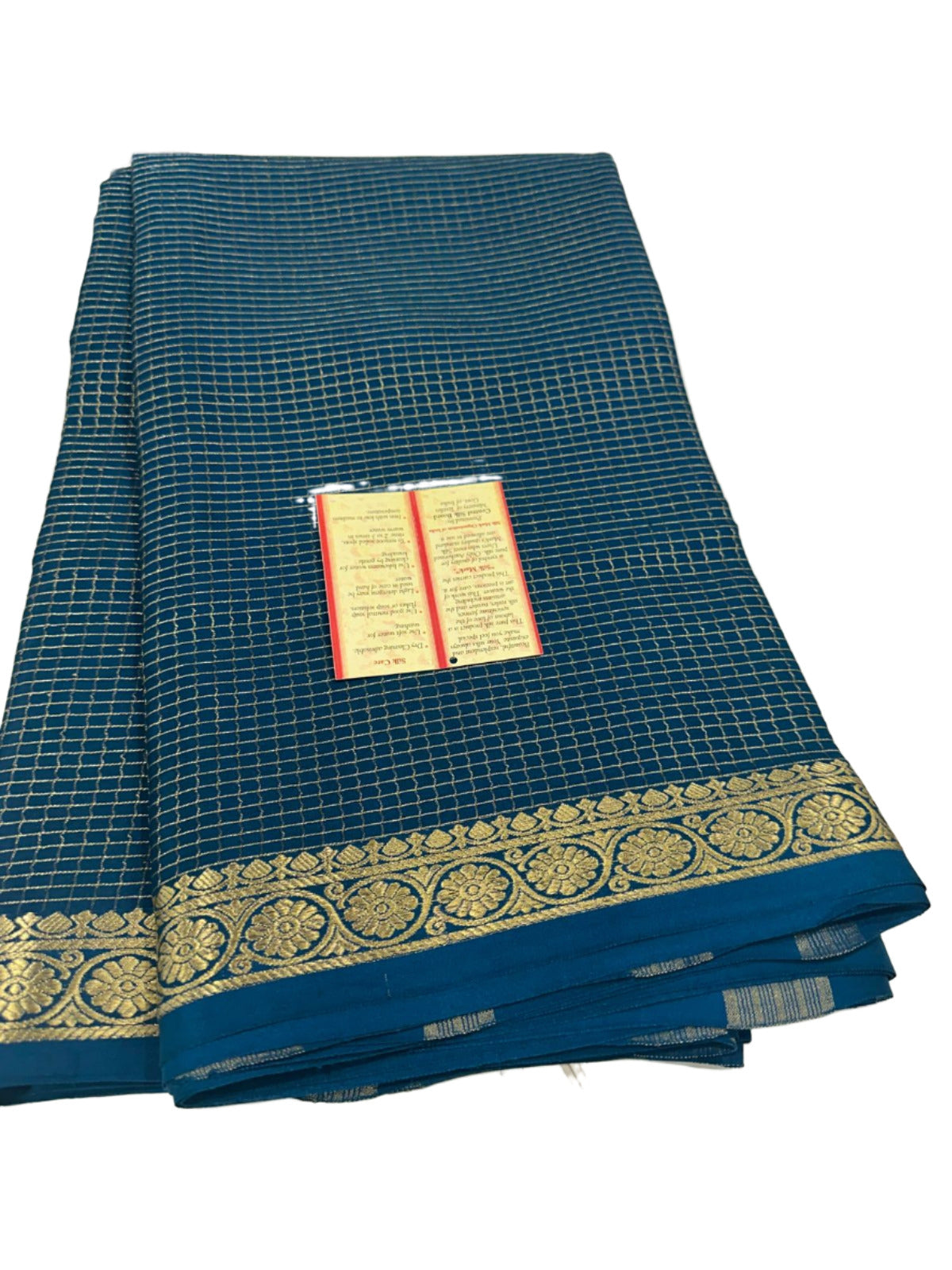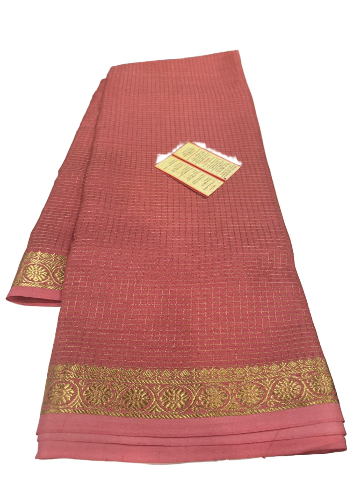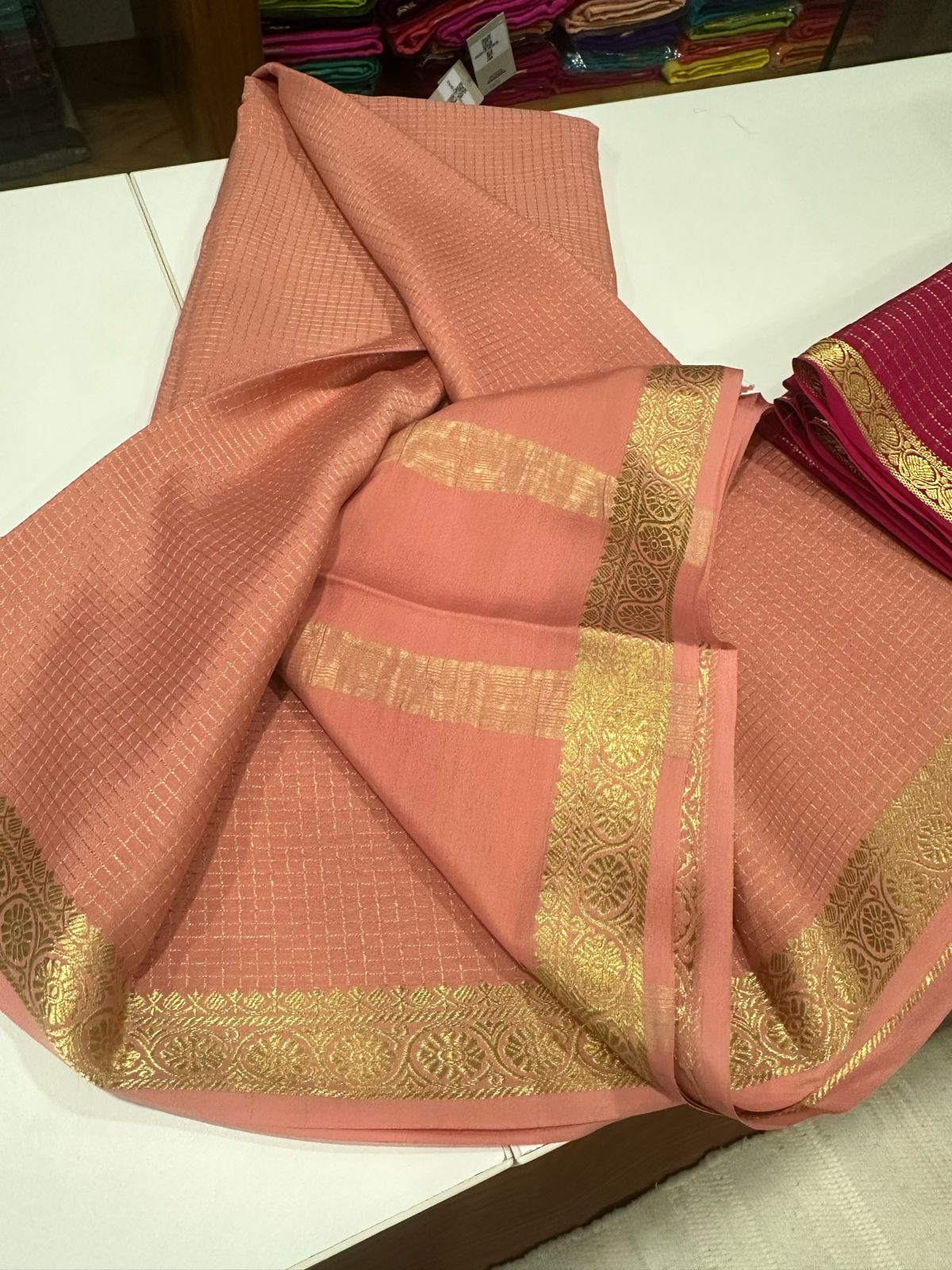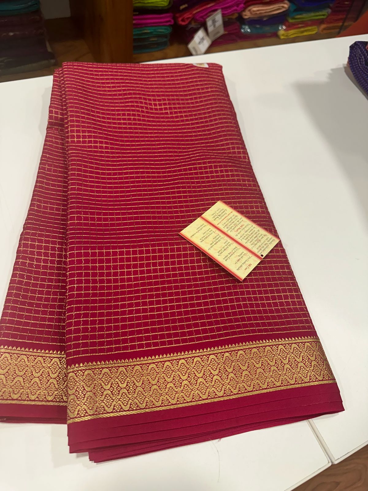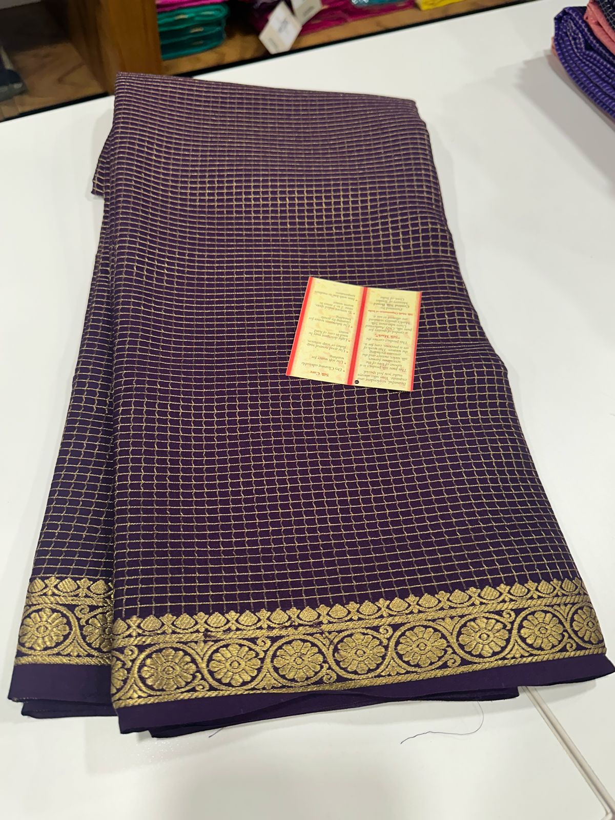 Experience sophistication with our Pure Mysore Silk Sarees adorned with delicate checks, now offered exclusively at Fashion Vibes. Crafted with fine-quality materials. Our latest designer collection features a range of captivating Pure Mysore Silk Sarees with Small Checks, ideal for adding a classic touch to any occasion.