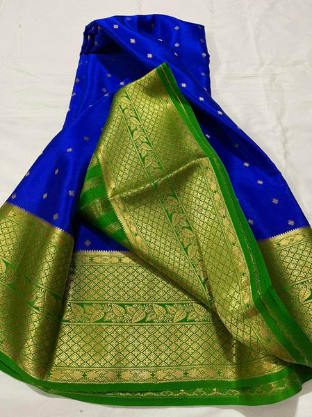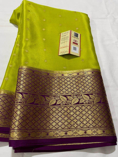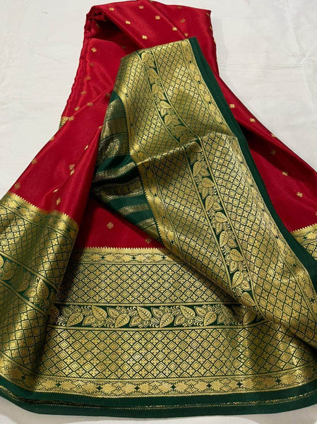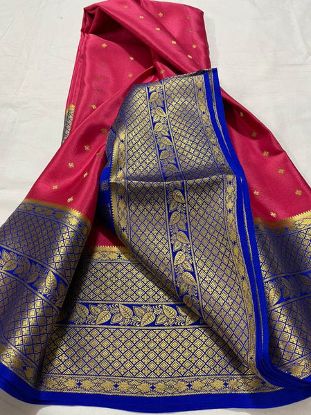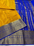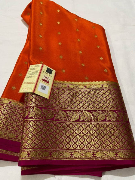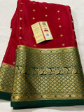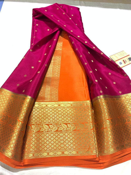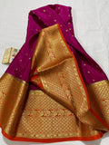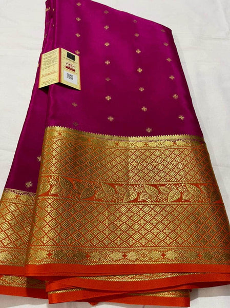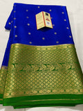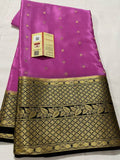 Fashion Vibes presents Pure South Silk Sarees with Rich Pallu 120 gram thickness. Long border with Motifs all over saree which comes with rich pallu and contrast border blouse has a long border.