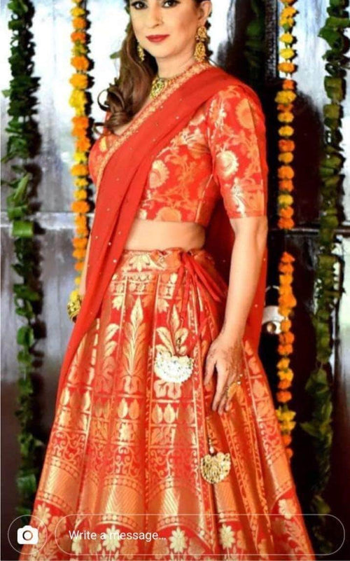 Pure Banarasi Silk Custom Lehenga in - Lehenga - FashionVibes
