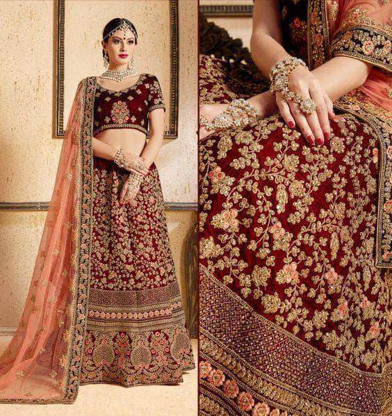 Bridal Lehenga or Wedding Lehenga are for your special day or a close family, friends weddings. Bridal lehengas are usually red or maron in color with extensive gold zari weaving. The traditional bridal lehengas have round cut with lot of ghera to give it a royal look. Wedding lehengas come with heavy embroidered cholis and heavy dupatta in pure fabrics.