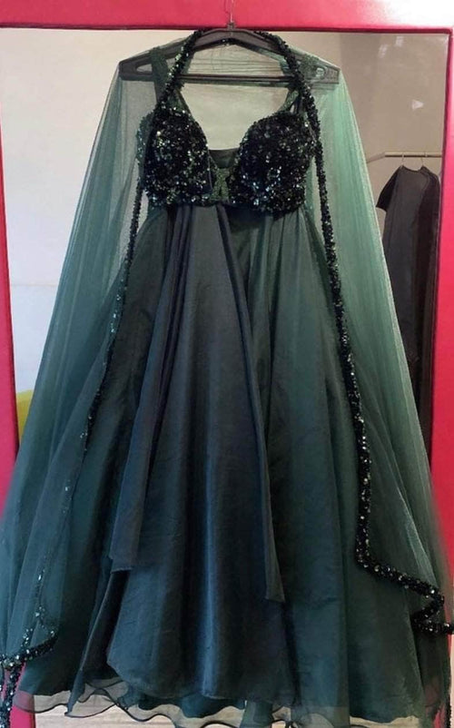 Designer Sea Green Silk Lehenga in - Lehenga - FashionVibes