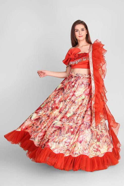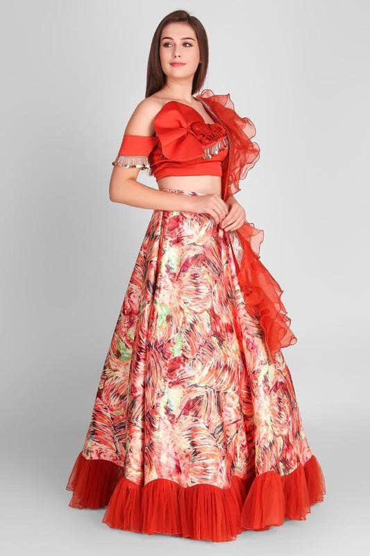 Red Long Top Lehenga with Matching Border in - Custom Salwar suit and Lehenga - FashionVibes