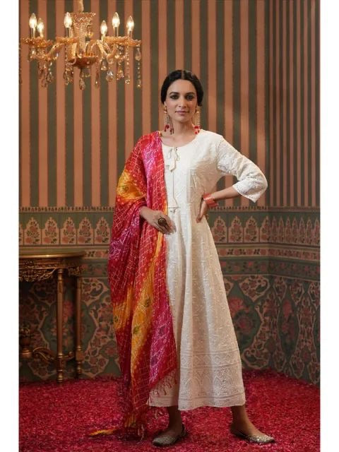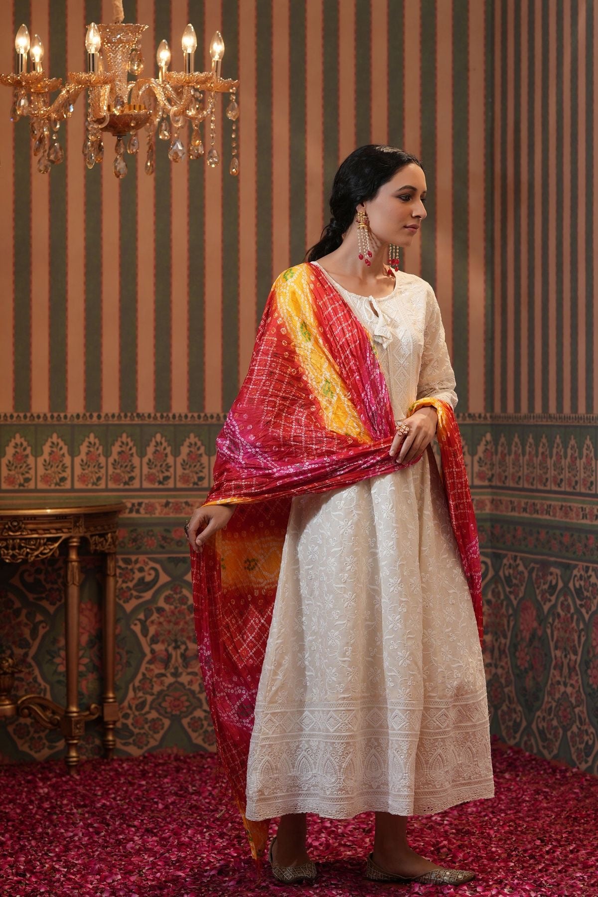 All over anarkali has work on Lucknowi Chikankari embroidery.