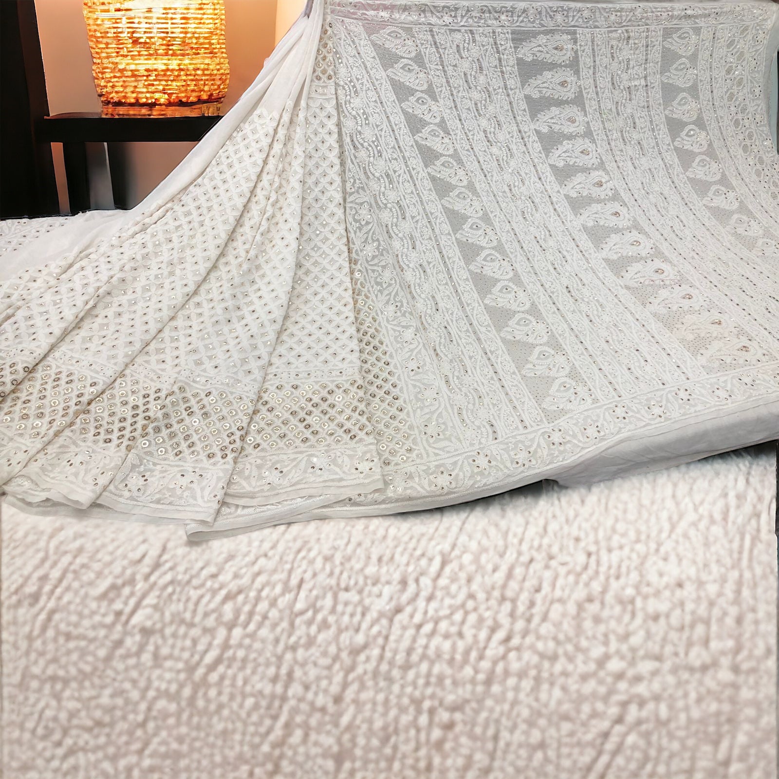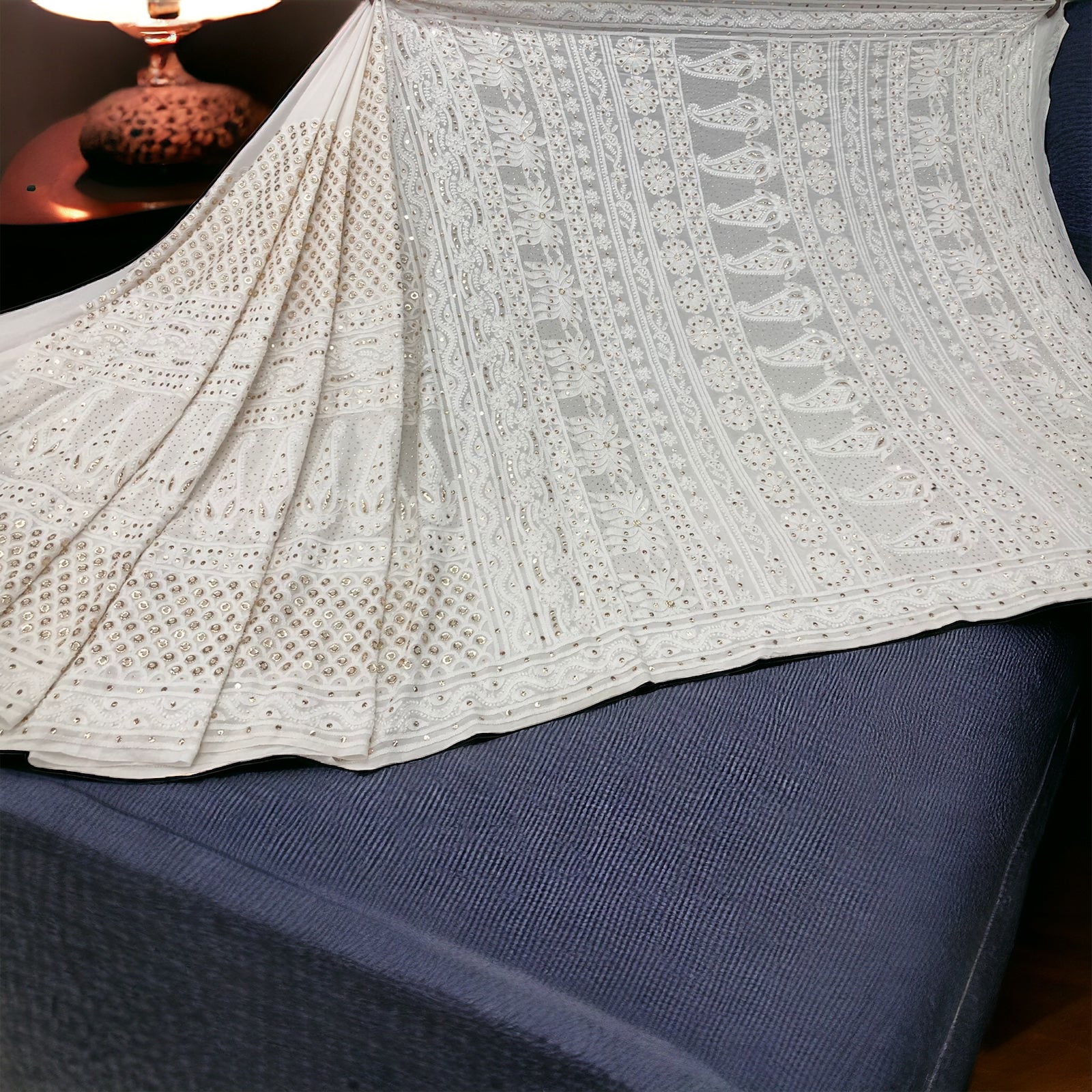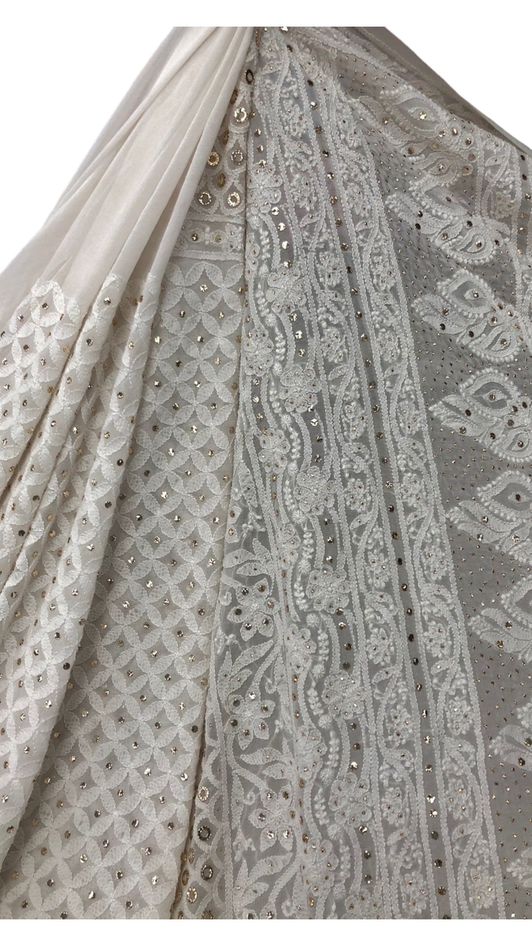 Look beautiful with this Chikankari AnarkalI Suit . Viscose Georgette fabric is used with designer fitting and details.