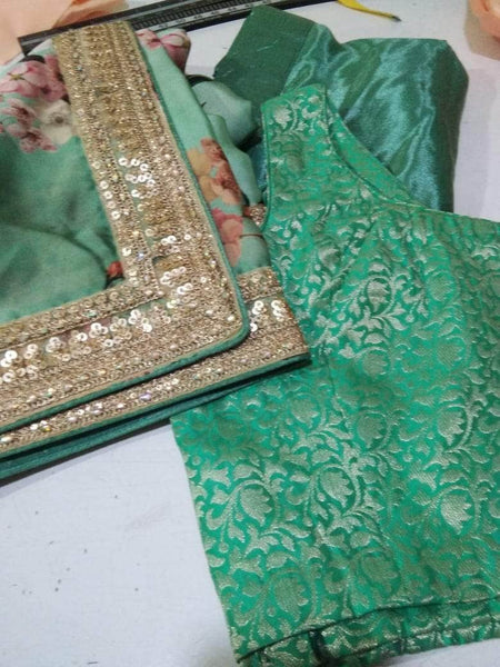 Standard Blouse stitching-$50 additional. If customer requires blouse stitching then payment is due after the order is placed. Stitching includes U neck, quarter sleeve standard blouse.