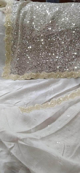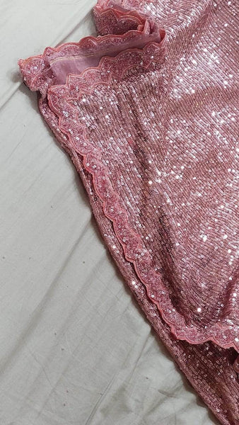 Fashion Vibes presents Premium Georgette Saree with Sequins and Handwork work all over. Paired with blouse in sequins. Best suited for parties!