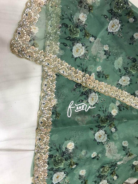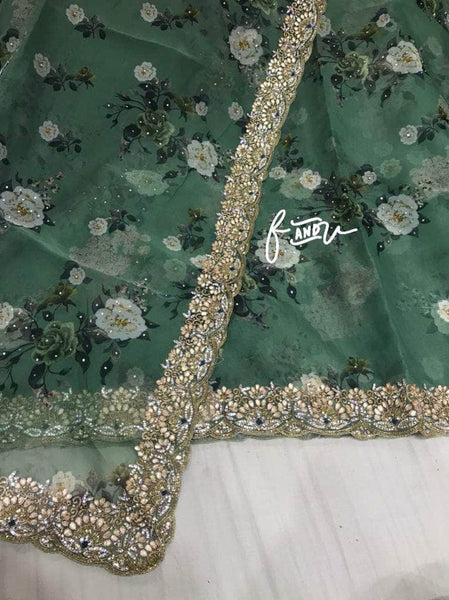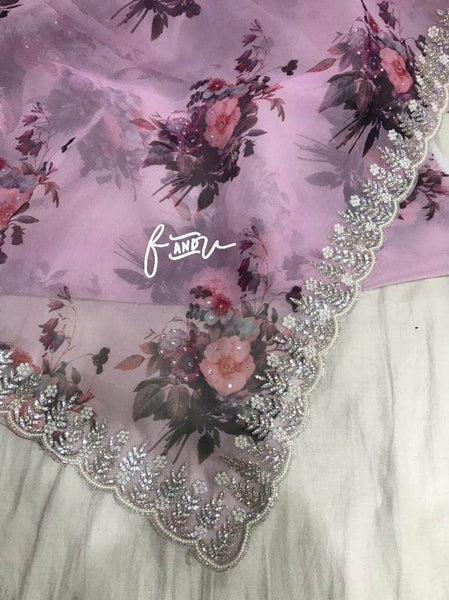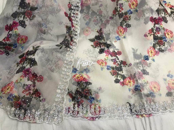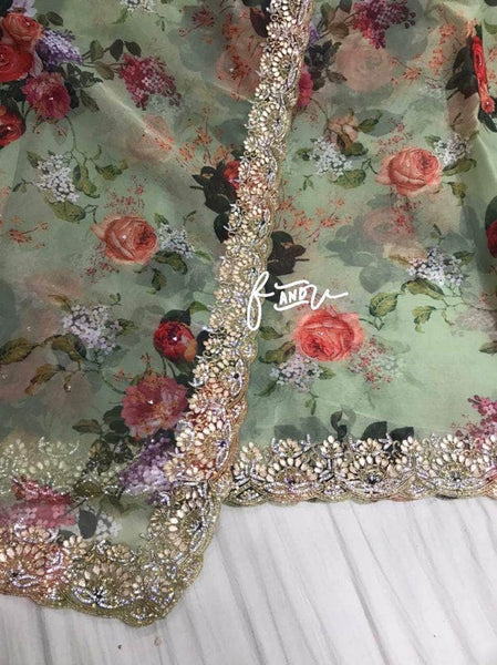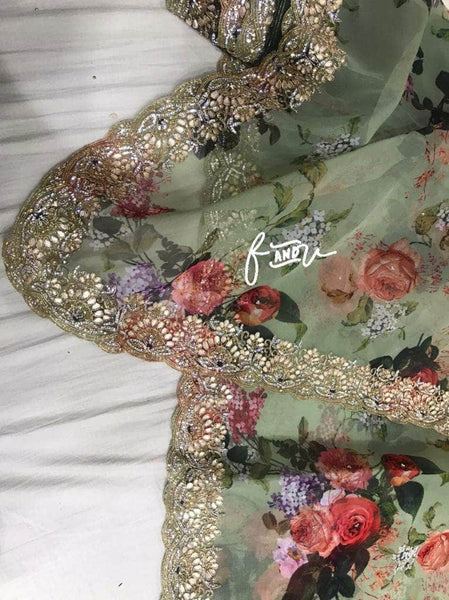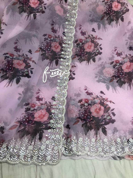 Floral printed Georgette Saree with Sequins Lace Border